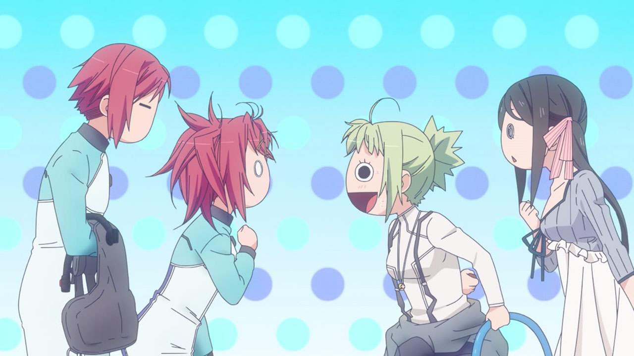 In that same vein this episode of Amanchu! is half goofy and half serious. The last two faces of the main character lineup finally show themselves, to be introduced in a light comic relief segment. They hardly have names or roles yet, but it’s a good way to start easing them into the show. I think ‘ease’ is certainly one of Amanchu!‘s abiding qualities, never in too much of a hurry to skip through its narrative, never getting very busy very quickly. The focus remains of Teko still, though with strong supports. Considering her insecurities it’s appropriate that the cast take their time to step forward, so both we and Teko can get used to them gradually.