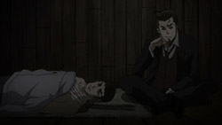 One thing that still kind of bothers me though is Corteo’s character. From the beginning, not much was said about why he seemed so willing to follow Avilio on his quest, even when he’s expressed not only his disapproval of it, but also his dislike of the mafia. Furthermore, didn’t Avilio get out of town when they were kids? Was their friendship so strong that it carried over however many years later, to the point where Corteo would willingly drop his life to come along on this revenge scheme? Even just from what we’ve seen, there’s very little indication of a strong, genuine friendship between the two. They hardly ever even interact—Corteo more often times than not serves as a vessel for Avilio to tell the audience what’s on his mind. There’s not much to his character beyond that. This episode does something to finally flesh out his character, as his new habit signifies how wearied he’s become by all this. However, it’s not enough to make up for some hitherto vapid characterization. Hopefully this will be amended in due time.