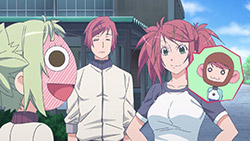 Finally, the full set of Amanchu‘s major characters have been completed, with the formal introduction of the last two—who handily happens to be twin so we have one less name to remember. Meet Ninomiya Ai (Oonishi Saori)) and her doormat, Makoto (Umehara Yuuichirou), who are of the ‘opposite in personality’ twins archetype. They’re also fraternal twins which means—oh no, a male has intruded into our perfect sanctuary of female beauty! Fear not, though; Makoto seems to be an organism completely free of testosterone. Also, backbone, which I’m assuming his sister surgically removed.