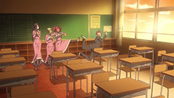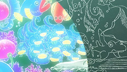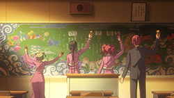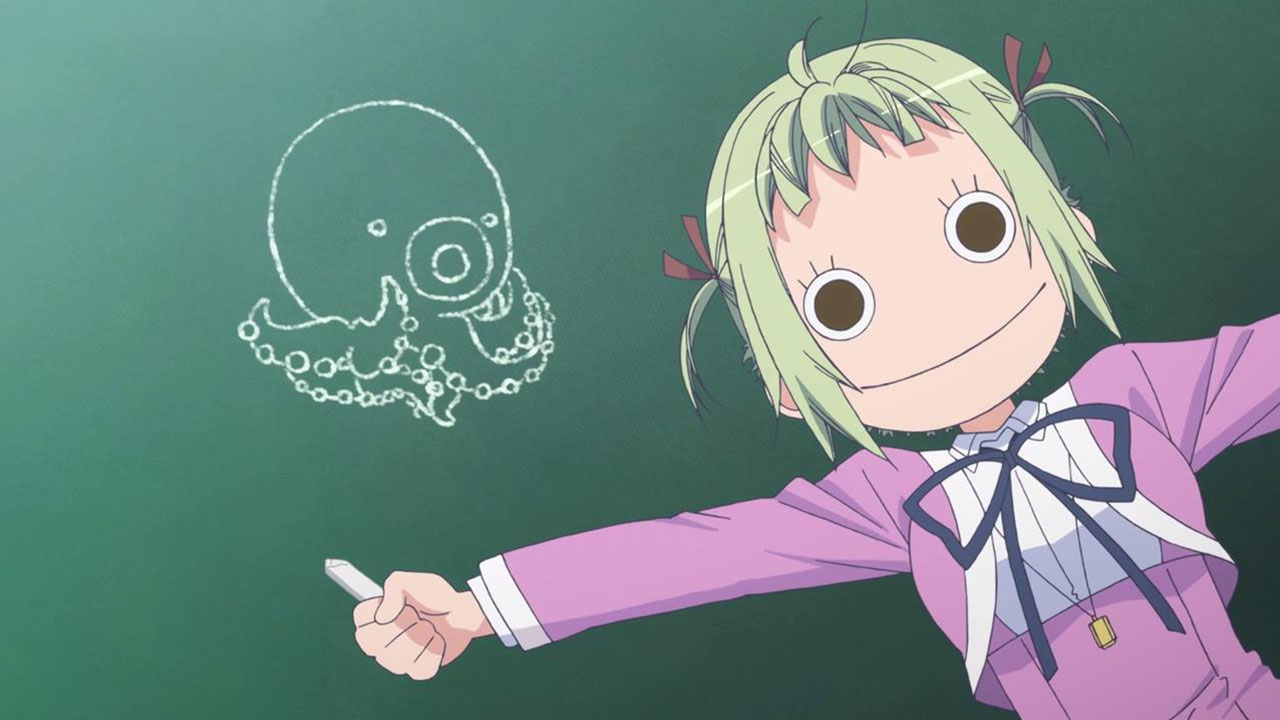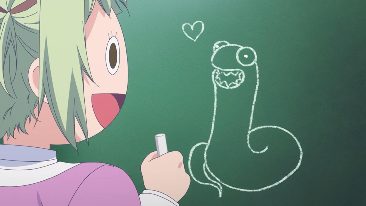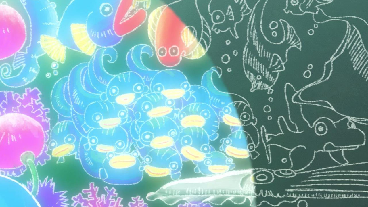 One big difference between a manga and its anime adaptation that we don’t talk about enough, perhaps because it’s taken for granted, is that anime has colour. ‘Well, duh, Passerby,’ but while all anime add colour to scenes and designs out of obligation, less actually specifically make use of that advantage. Amanchu!‘s original drawing on the chalkboard scene was monochrome. Certainly, colour was implied, but not used in the same way as in the anime. In fact, the entire scene was expanded compared to the manga version, really pushing the entire diving metaphor. Sure, Teko has yet to step into the open seas as a diver, but what she really really yearns for is to do something memorable with friends. And it doesn’t matter if it’s diving or whatever, it’s about Teko being able to step forward and add colour to her life.