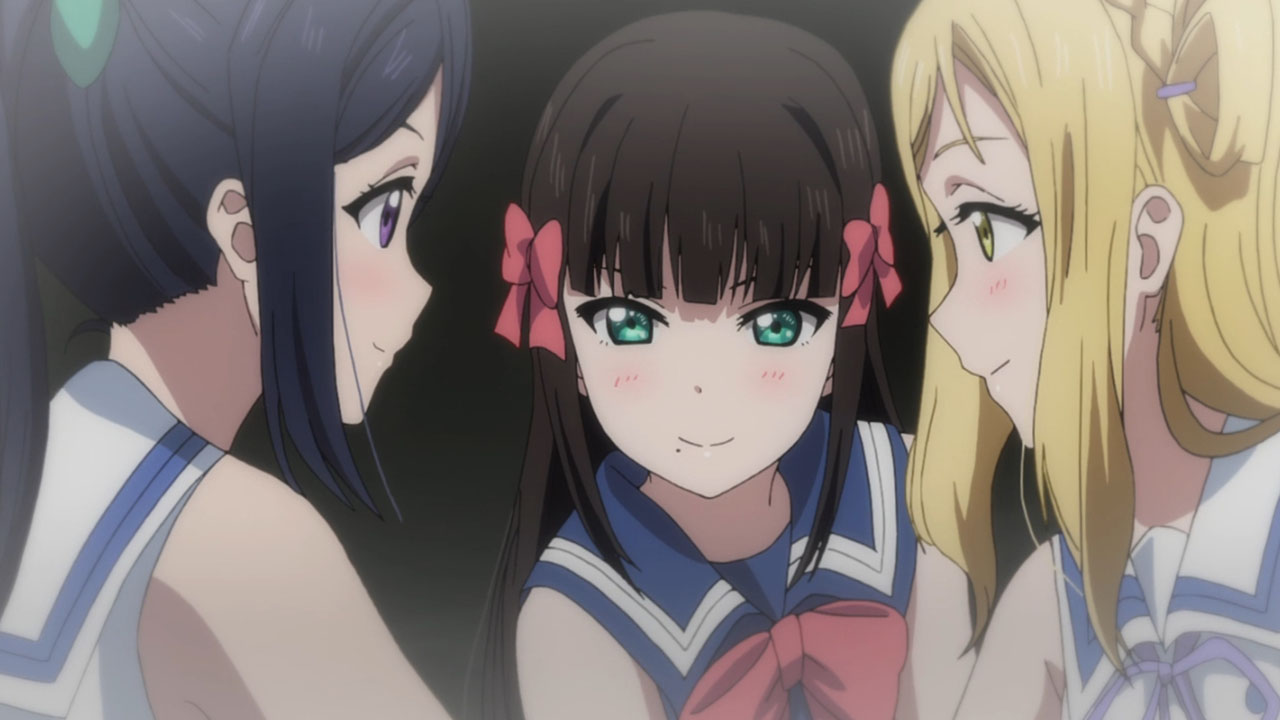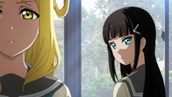 – Seems like the school merging has going on for a while already. Is that what propel the third years to become school idols? They thought doing something like μ’s would help save the school as well, but it didn’t work. That might be the reason why Kanan left school, Mari went somewhere for a while, and Dia renounced her love for school idols.