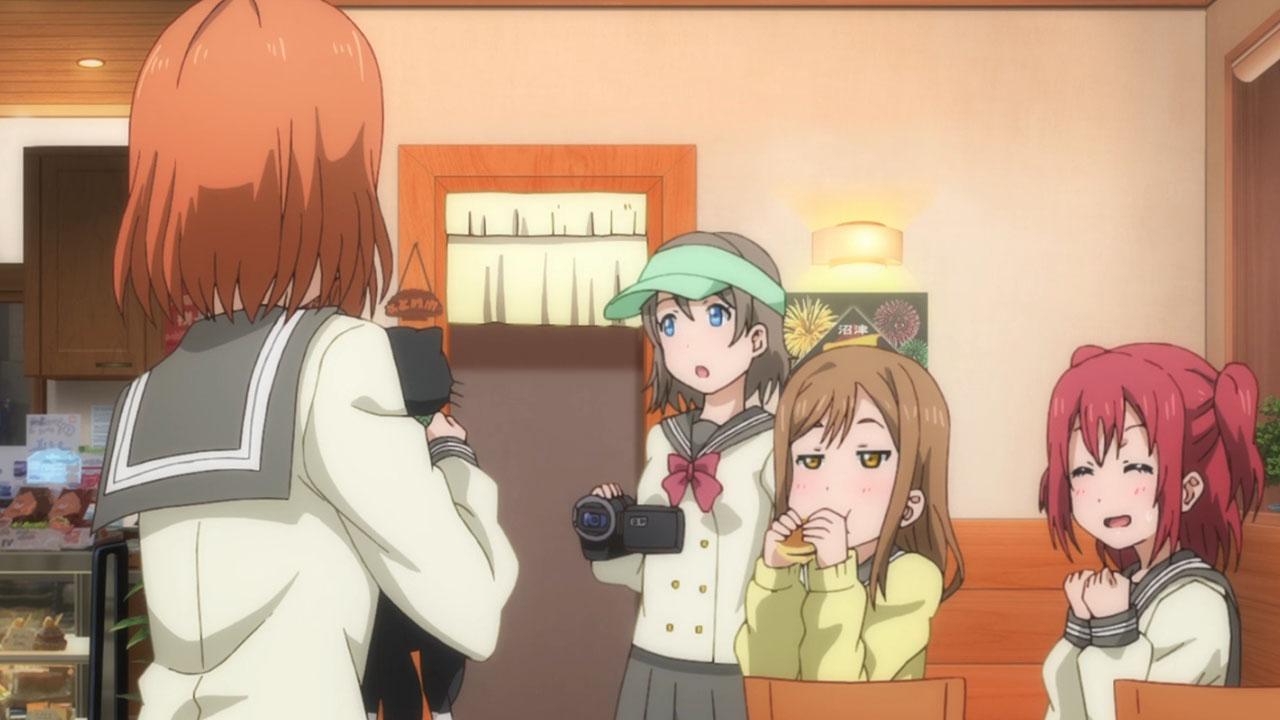 And still, I think it was worth it just to see Chika hilariously hang a lampshade on the coincidence of being compared to µ’s. I do enjoy that kind of meta humor.