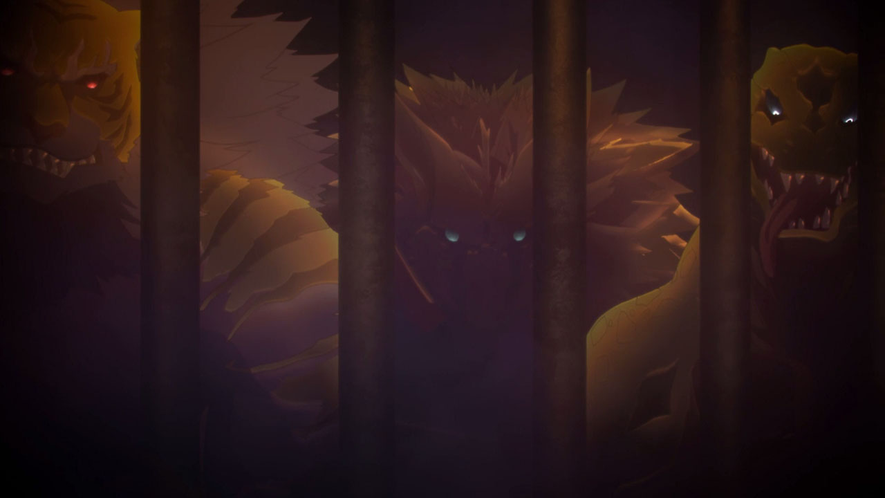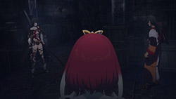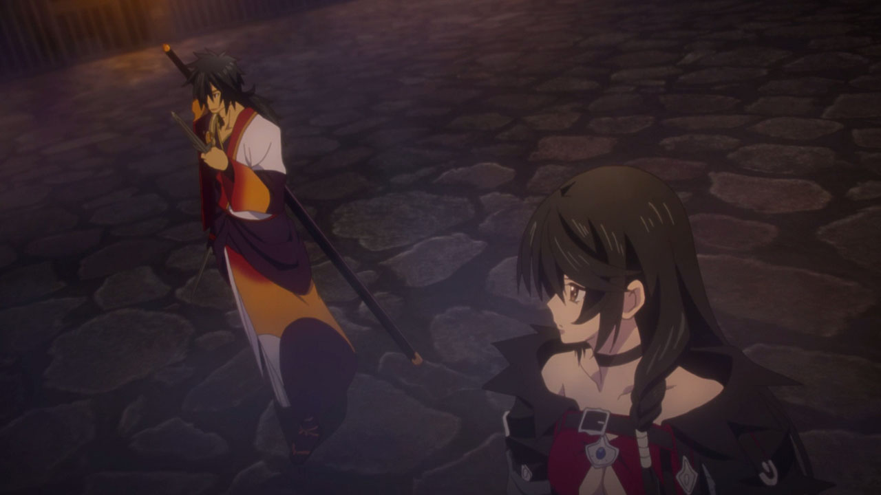We’ve switched to the story of Velvet Crowe (Satou Rina), a prisoner who gets a little help from Seres (Arai Satomi), a mysterious Malak, and Rokurou Rangetsu (Kishio Daisuke), a human-turned-daemon; together, these three spend the episode threatening each other, cutting down evil monsters, and finding a way out of this prison so they can fulfil their personal quests. If I had to pick, I think Velvet would have to be the standout of the bunch – I almost wish she was the protagonist of the series; she’s got a sharp tongue and a passion for killing, which is very different from Sorey. Seres’s design is cool, but she didn’t show much personality, and Rokurou didn’t stick around long enough to leave an impression. In saying that, I suspect if we got a full adaptation of this story I’d praise the cast a lot more, as I’ve heard the characters in Berseria are one of the strongest points of the game, at least compared to Zestiria.