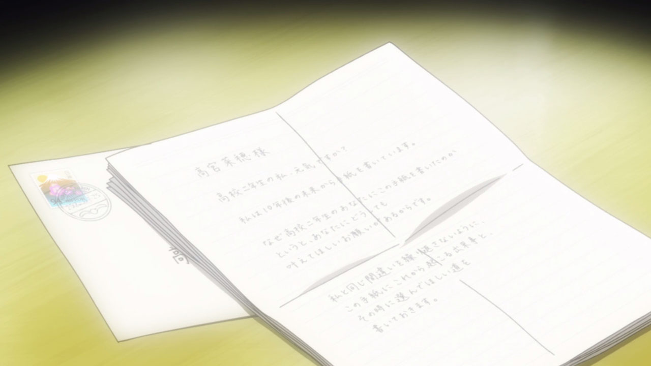 This is something that I feel should be a done bit more often – a seemingly small, negligible event/choice/etc. early on actually having a really big consequence down the road. Though, I certainly never expected Suwa to have also gotten a letter from the future.