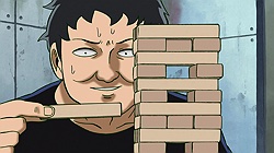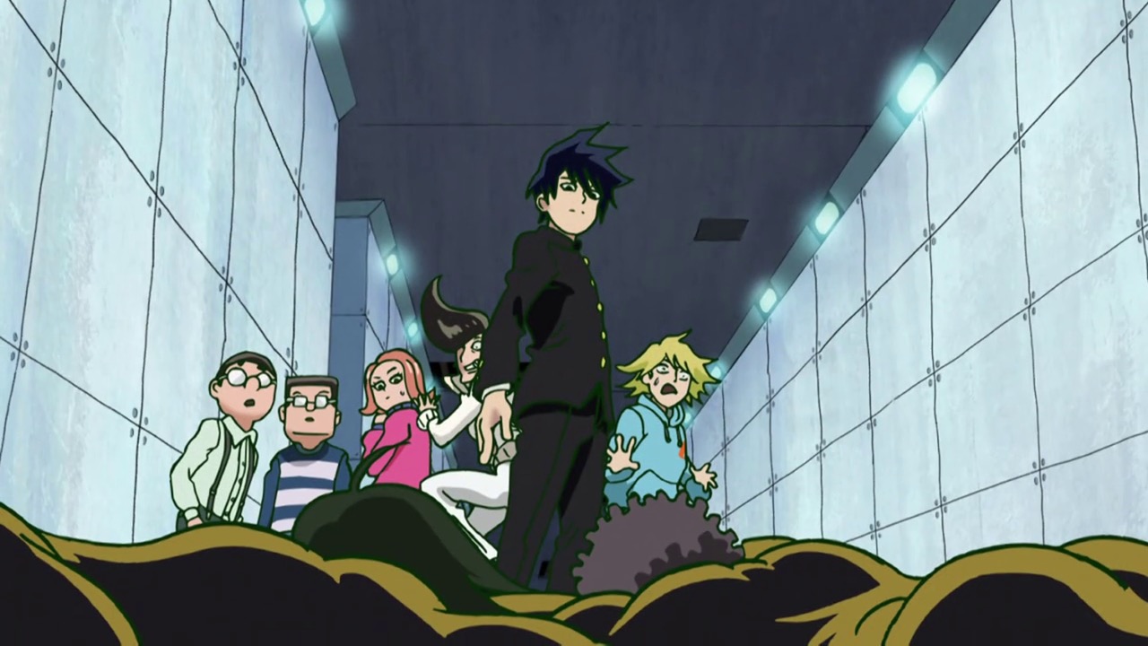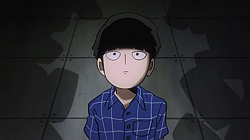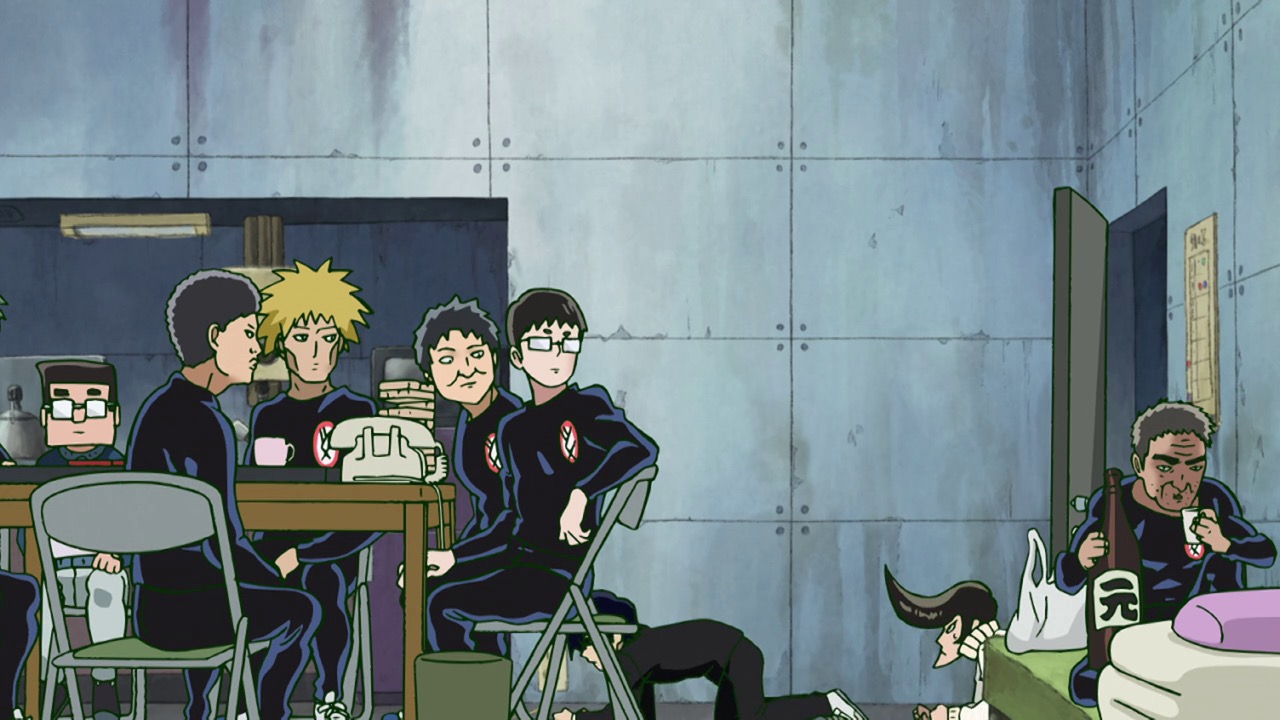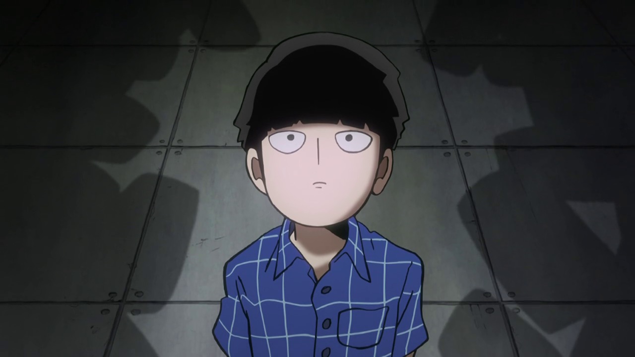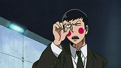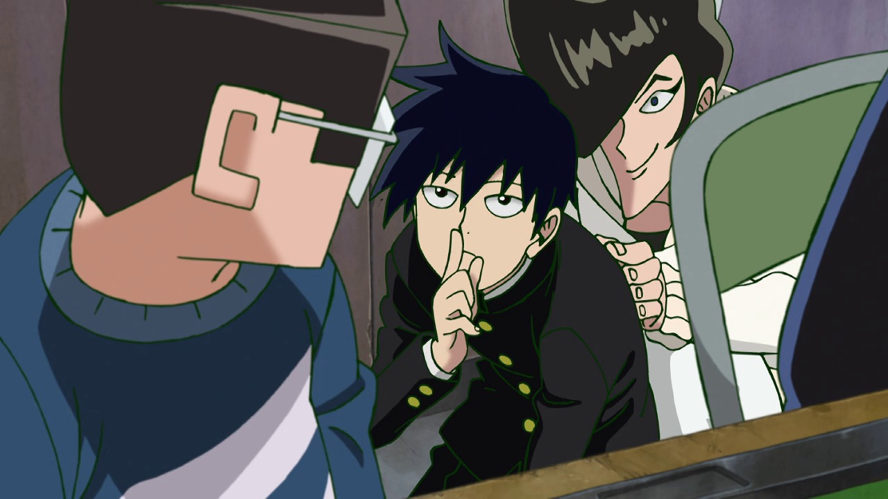 What we’re left to ponder, of course, is that epilogue. What do we make of the seeming arrival of the boss of Claw – an aura strong enough to make the lackeys and the escaping Discovery kids quiver in terror – only to see the face of Reigen? Well, I suppose it’s possible Reigen is both the world’s best actor and actually the head of Claw – but I’m not betting on that. Occam’s Razor suggests this is a gambit, a ballsy ploy to impersonate the boss in order to rescue Mob (which would in itself be quite a level-up for Reigen). I mean, we know he can bullshit with the best of them, that’s a given. One thing’s for sure – I took a while to warm to Reigen, but now that he’s been missing for a couple of eps I’ve really missed him and I’m glad to see him back. Not only is he a great character, but he’s the one guy who’s always on Mob’s side, and Mob needs all the help he can get.