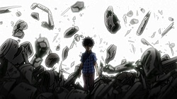 If there’s one impression I’m left with that’s stronger than any other, though, it’s that there’s a very stark and distinct hierarchy among espers. That, and that Mob sits at (or very near) the top of it. Claw is built around this hierarchy – the peon lackeys with no powers at all, the zaku foot soldiers with spoonbender trifles (which are still enough to give them an insurmountable advantage over muggles), the scars – the elites of the branches, effectively the upper management. And then the division leader her(?)self, and finally the boss altogether, who may be the only esper out there strong enough to have a chance against Mob.