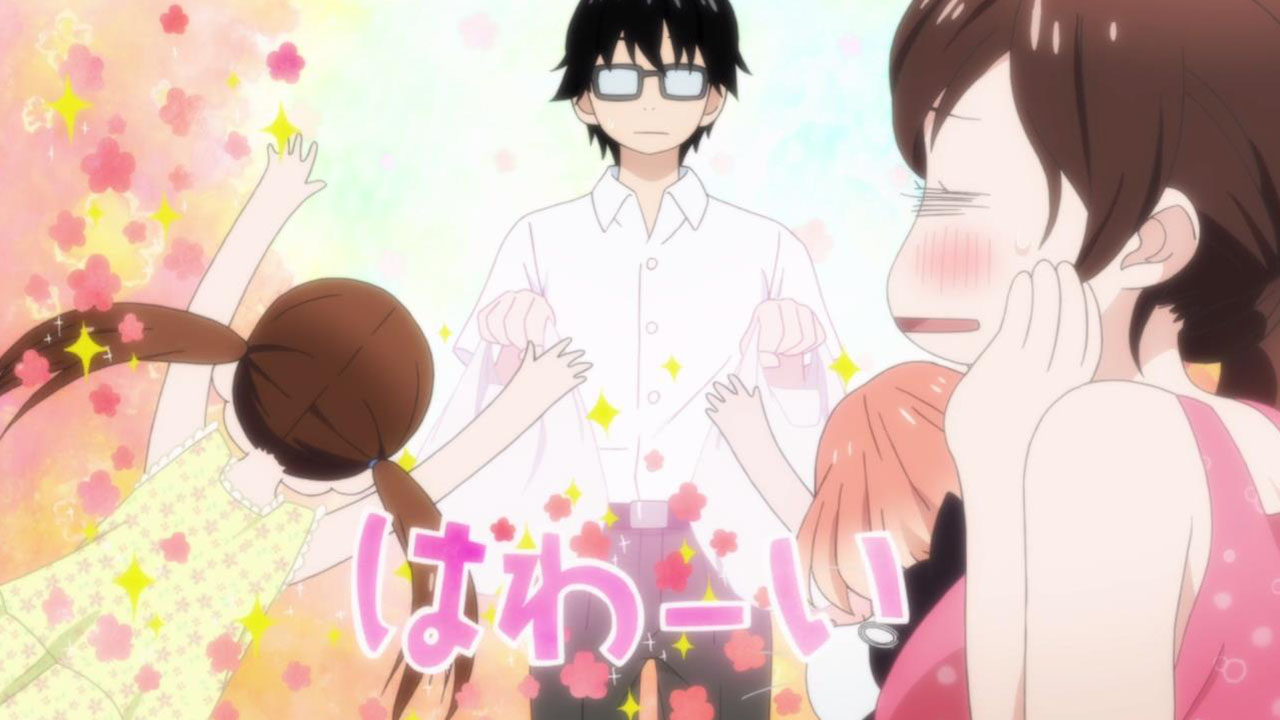 It’s also not that the anime medium does not add value to 3-gatsu. Let’s just have a look at how it opened. Now, chapter 01 is simply Kiriyama Rei. Rei (Kawanishi Kengo) is our protagonist, so we need to learn something about him, fair enough. What 3-gatsu actually does, to start, is simply show us his going through his life, no narration, no internal monologue. This is great for two reasons: first, I’m all for showing over telling (look, you can at how much you can deduce about a character just from a few shots of his room) but also because the silence is so effective. One thing that anime has over manga: sound. While the scene actually played out fairly similarly in both mediums, it was much easier to notice the lack of dialogue and general lifelessness, especially between Rei and his father(-figure). It made for a stark contrast when Rei goes to have dinner with the lively Kawamoto sisters (Kayano ai, Hanazawa Kana, Kuno Misaki). It’s an effective juxtaposition that both draws out the despondency of Rei’s life in the first half and the personalities of the cast in the second.