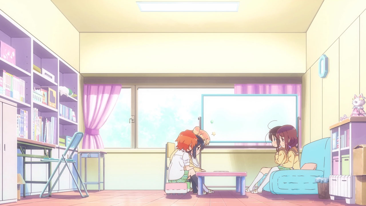 Unlike you typical slice-of-life that hand you a set of characters and never do anything serious with them, I thoroughly enjoyed how this week’s episode continued to build Tamaki’s character. We know she’s having your typical freshman crisis that involves being unsure of what you want to do and getting to actually see her struggles both explicitly and implicitly makes the whole thing feel that much more engaging. For example, the difference between the Tamaki who couldn’t even open the second half of her artbook and the Tamaki who at least got her artwork in-front of her senpais may not have been a big change, but watching how all of it played out and how everyone played a part had me completely invested the entire time. From Tamaki accidentally finding Ayame’s secret notebook to Yumine passing on verbatim what Tamaki’s senpais said, it was a great blend of separate elements that all worked toward the same goal.