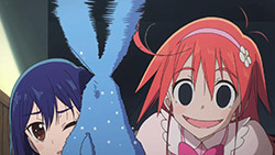I wasn’t bothered as much by the lack of explanation because, as sonicsenryaku and you yourself note, it’s early in the series, and I personally enjoy holding onto a pile of clues. It seems, to me, that Flip Flappers is not really interested in the traditional world building as much as constant sensory stimulation. There are plenty of things that are weird in this setting, but are taken into stride, and I think that plays into the general surrealism of the show. Whether that amounts to anything is something we’ll have to see further down the line, of course.