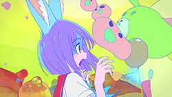 Or perhaps I’m just blowing smoke and have no idea what I’m talking about. Flip Flappers certainly has no shortage of ideas that one can pick at and guess at some meaning from. For example, there’s also a theme in this episode about instinct vs reason (the urge to gnaw, embracing insanity vs resisting the flow, Papika vs Cocona, anima and animus) that one can make plenty of hay out of, but we can debate what it all actually means until we’re blue in the face. Flip Flappers is certainly in no hurry to explain anything itself. We’re left to wonder by ourselves about last week’s robot mugging, about whether it was all a dream. Cocona finally gets to meet the adults, who are usually supposed to have the answers, but if anything it’s led to more questions. Perhaps Flip Flappers will be more forthcoming next episodes, or further down the line, but for now we’re mostly left to discuss it amongst ourselves. Well, at least that’s sort of interesting in its own way.