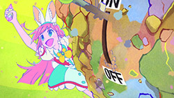 To see if Flip Flappers has more under the surface, though, to find real depth, I think we need to look at its influences, for that is where its commentary lies. Obviously this episode was heavily inspired by Alice in Wonderland (down the rabbit hole they went), but that’s not too surprising since Japan as a whole seems enamored by Lewis Carroll and many is the anime that will toss in a reference for no real reason. Flip Flappers, though, seems to go one further, injecting an absurdist spirit into its entire setting. Pure Illusion is definitely dream-like, but even outside there are things that are just strange without explanation. How much of that is a deliberate design choice and how much is that is a lack of deliberate design choices is hard to say, like with modern art, but at least it’s interestingly crazy either way and we should all just nod thoughtfully and pretend we get it. To be fair, there does seem to be a method to the madness. While Alice in Wonderland was arguably intended to be an entirely meaningless affair, as absurdism is oft, Flip Flappers does string some coherency together in both plot and themes. As far as I can tell, anyway.