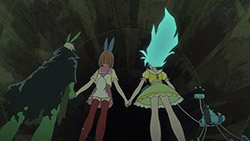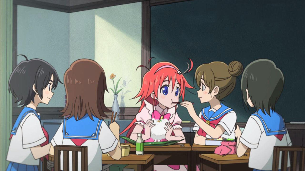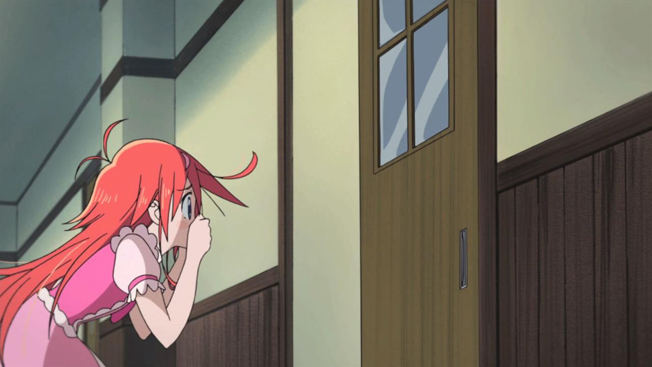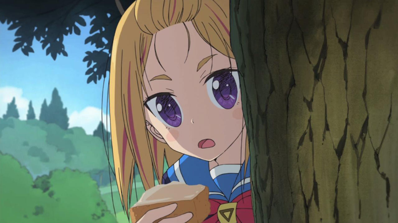 So, what do we have from Flip Flappers? Alice in Wonderland, fairy tales, and magical girls. These all come from roughly the same place, really—children’s stories. Amongst all the magical girl offerings this season I think Flip Flappers is about magical girls as children’s stories, or at least frames itself as one. Perhaps it’s not instantly recognisable in that form, considering flat out bizarre it likes to get from time to time, even dark and creepy, but a lot of fairy tales are also rather bizarre and dark and creepy. The sanitised, Disney versions less so, perhaps, but the Brothers Grimm certainly had no qualms about shocking the kids. Take Hansel and Gretel, which Flip Flappers had quite obviously alluded to. It has a cannibal witch living in a house made of sweets. Nightmarish? Definitely. But kids are going to be saddled with abstract fears regardless, so why leave them out of their stories? And so fairy tales, which are often also morality tales. Rather than pretending witches and monsters don’t exist—children know witches and monsters exist, especially under their beds—they teach that, with wit and character, they can be overcome. And so it is with Flip Flappers. Cocona acknowledges that adventuring is scary and dangerous. Flip Flappers says: go anyway. It’s hard not to see some Ghibli here, since we’re talking about anime and children’s stories. As I noted last week, Spirited Away plays with similar themes too. All that Japanese folklore stuff is actually pretty spooky. But hey, builds character.