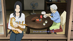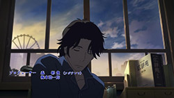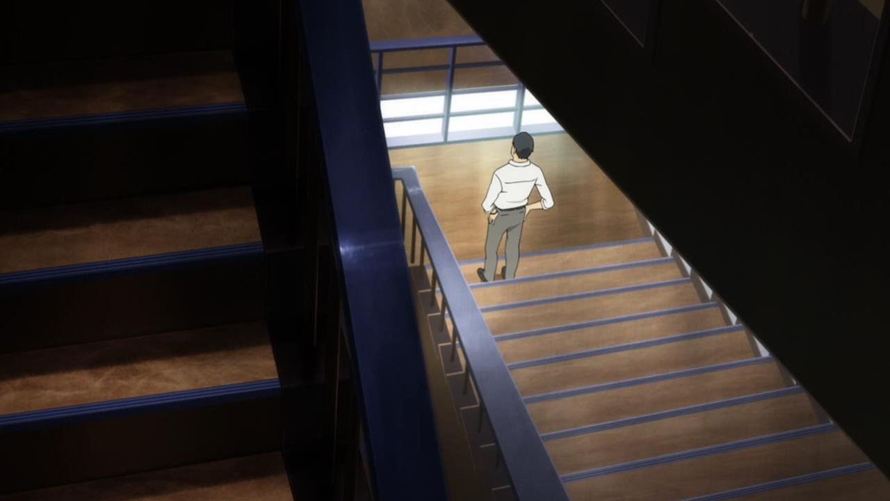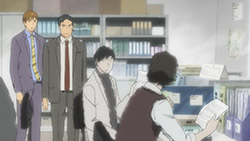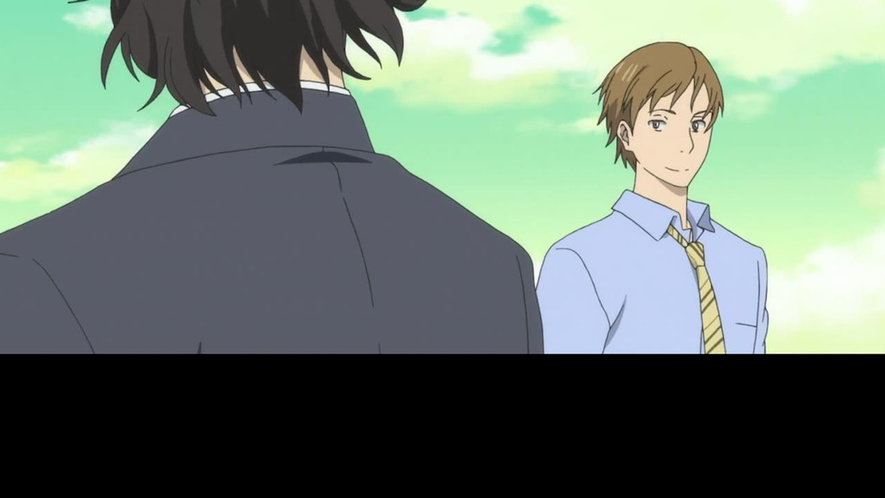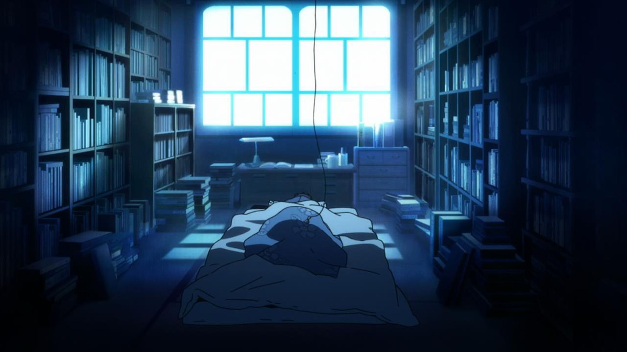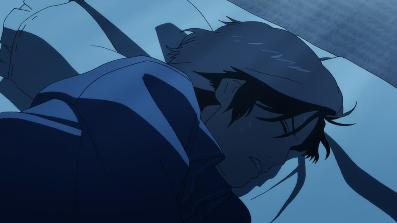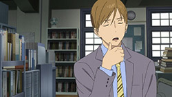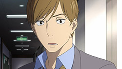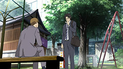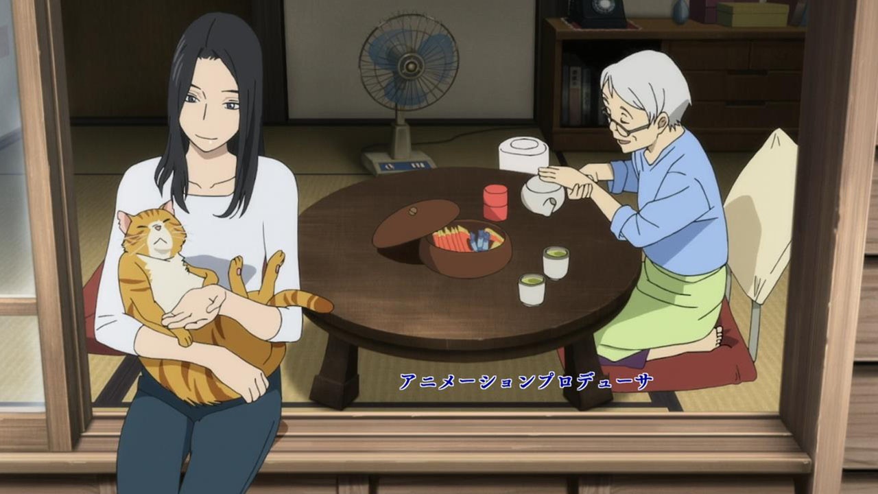 Majime Mitsuya (Sakurai Takahiro) is a funny one – a not very good salesmen who has a borderline obsession with words, to the point where he even dreams about Kanji characters in his nightmares. He may be a word otaku (if that’s really a thing), but he’s instantly likeable in how genuine his mannerisms come across; he’s unassuming and gentle but clearly has a lot on his mind that he doesn’t have the opportunity to express. We get a valuable slice of his life in the way his room is cluttered with books, the way he interacts with his cat, and eats dinner with the lonely old woman upstairs. Those little moments are charming and help establish how he’s just living each day as it comes without any true purpose.