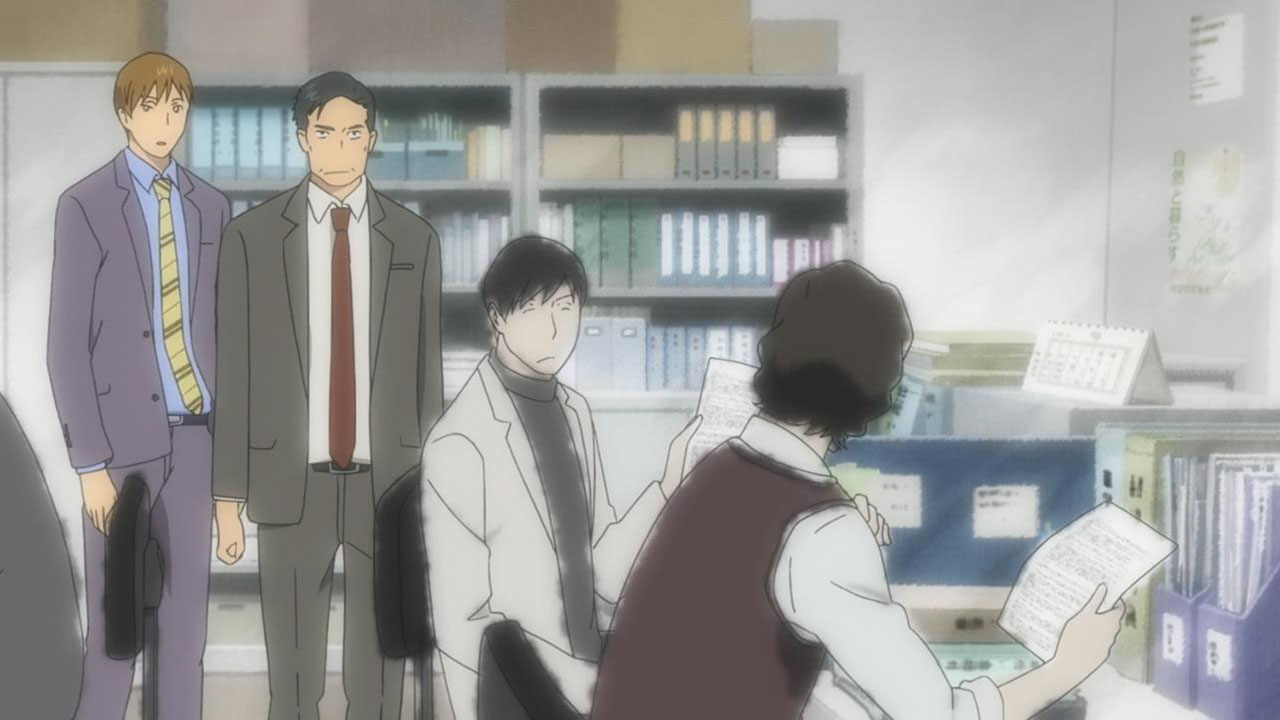 But that purpose comes at him without warning, after his encounter with Nishioka Masashi (Kamiya Hiroshi) where he points out how bad he is at his job. The talking-to he gets from him unearths his passion for defining words, which just so happens to help with the search for a new replacement at the dictionary department, after the senior editor has to retire. What follows is a sense of whimsy and purpose when Majime shows off his natural instincts with words and trying to define them as clearly as possible. When you think about it, trying to define “left” is a tricky thing to do, but Majime does it without thinking twice.