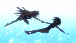 Heck if I know, I’ve seriously been wondering that this whole time recently too. One of the episodes previously mentioned that only girls could go to Pure Illusion too…so I was confused. I didn’t know if that meant he could somehow go as well as long as there was a girl there to open the door etc or what. Do males in Japan even wear that same style of swimsuit…? The zippers seem weird to me to begin with before even considering his gender.