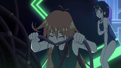 In other details, it looks like pure illusion this week was inside of bu-chan. You can tell because the planet is designed like a brain and the girls messing around in the world seemed to have had cascading effects in the lab while hidaka was administering repairs. The midget scientist seemed to be a proxy for dr.hidaka trying to defend his creation in pure illusion. Through it though we see that hidaka does have a caring side, something that Sayaka realizes when (and softens up a bit) she draws the conclusion that the pure illusion world of this ep was related with the zany doctor