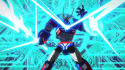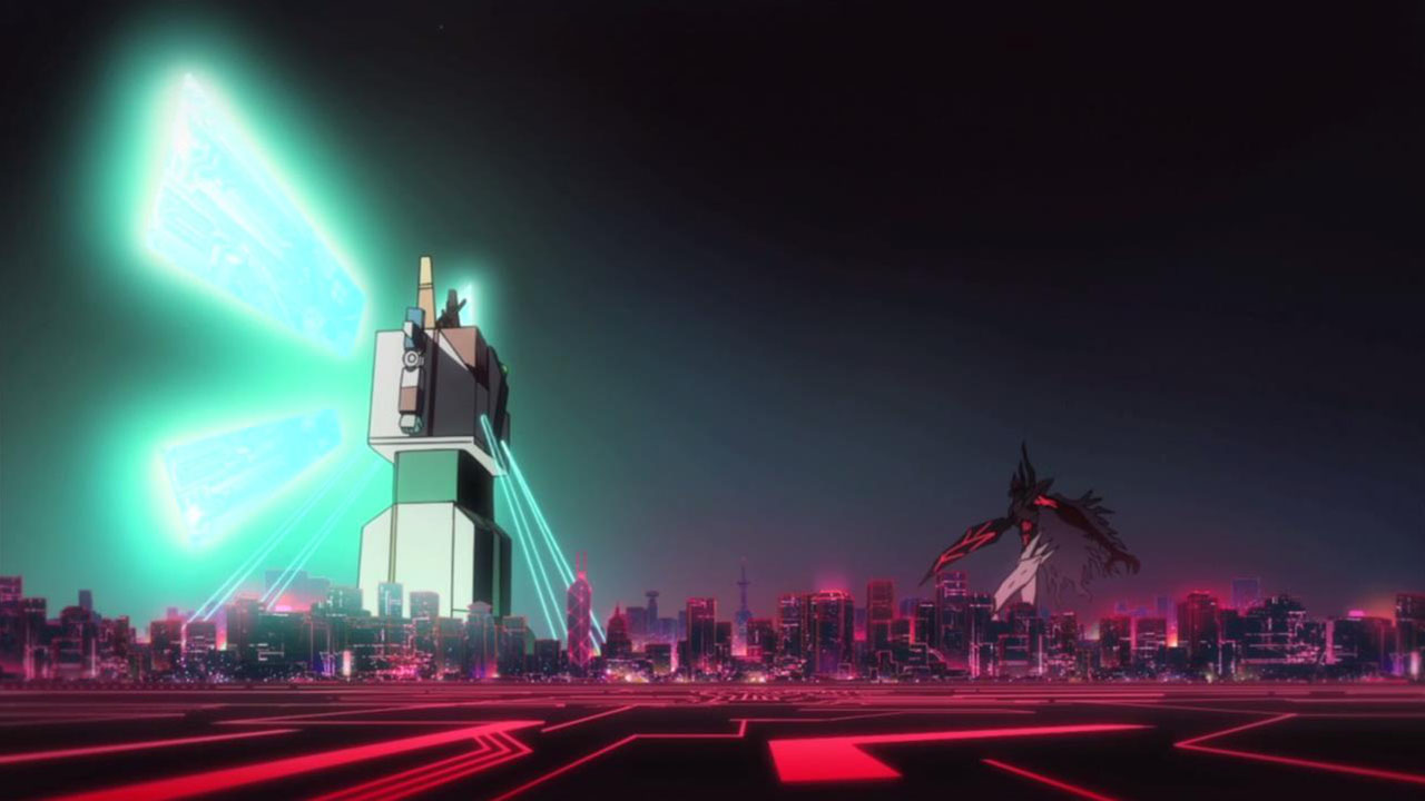 I wonder, though, if this fanservice episode was not also something of a metaphor for the larger Flip Flappers plot. Often does Pure Illusion seem to mirror the world ‘outside’, and here we have it once more, in spades. Is Pops not a melodramatic Dr Hidaka? Does he not have a Flip Flap of his very own? Pops built his futuristic, abstract world, under threat from shadowy forces; is it the same for Hidaka? Is Pure Illusion the work of man, now imperiled by… whomever Yayaka works for, I guess. And how about Yayaka? In more plot-relevant development, she’s slowly coming around, though at the expense of her peer reviews. What better way is there to break Yayaka out of her shell than super robots? Yayaka’s always been (or made a show of being) a no-nonsense, purely business sort, while on the other hand super robots are, frankly, stupid. They’re unwieldy. They run on magic and wishful thinking. You have to shout your attacks. And you can’t even use your most powerful ones until the end of the fight. They’re stupid. But also awesome. They’re an invitation to willingly throw away rationality, something which is obviously difficult for Yayaka but it’s the only way she’s going to be part of the trio instead of the odd girl out.