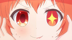 I’m pretty satisfied with what Minaha adds to the show, it’s competitive but pushes Tama to learn and better herself, something you could see as a tough love approach, and maybe she switches her mood too much (at least I think so), but she does add something that I find positive to the show. What I DON’T like, however, is how this show presents Minaha being able to recognize Tama with altered hair but can’t recognize Seki’s slightly less altered hair and removed glasses. Maybe the make-up really changes things around, especially since make-up affects…eyes by making them starry, so they’re like contacts, I guess?