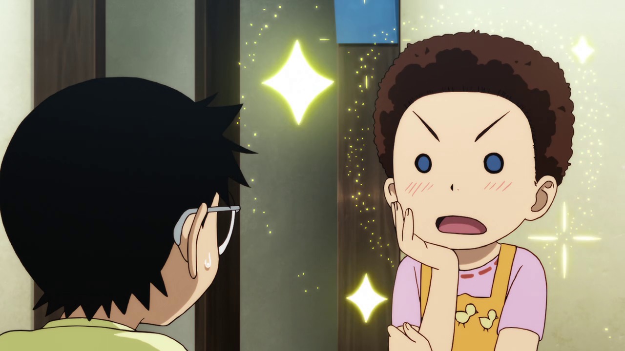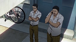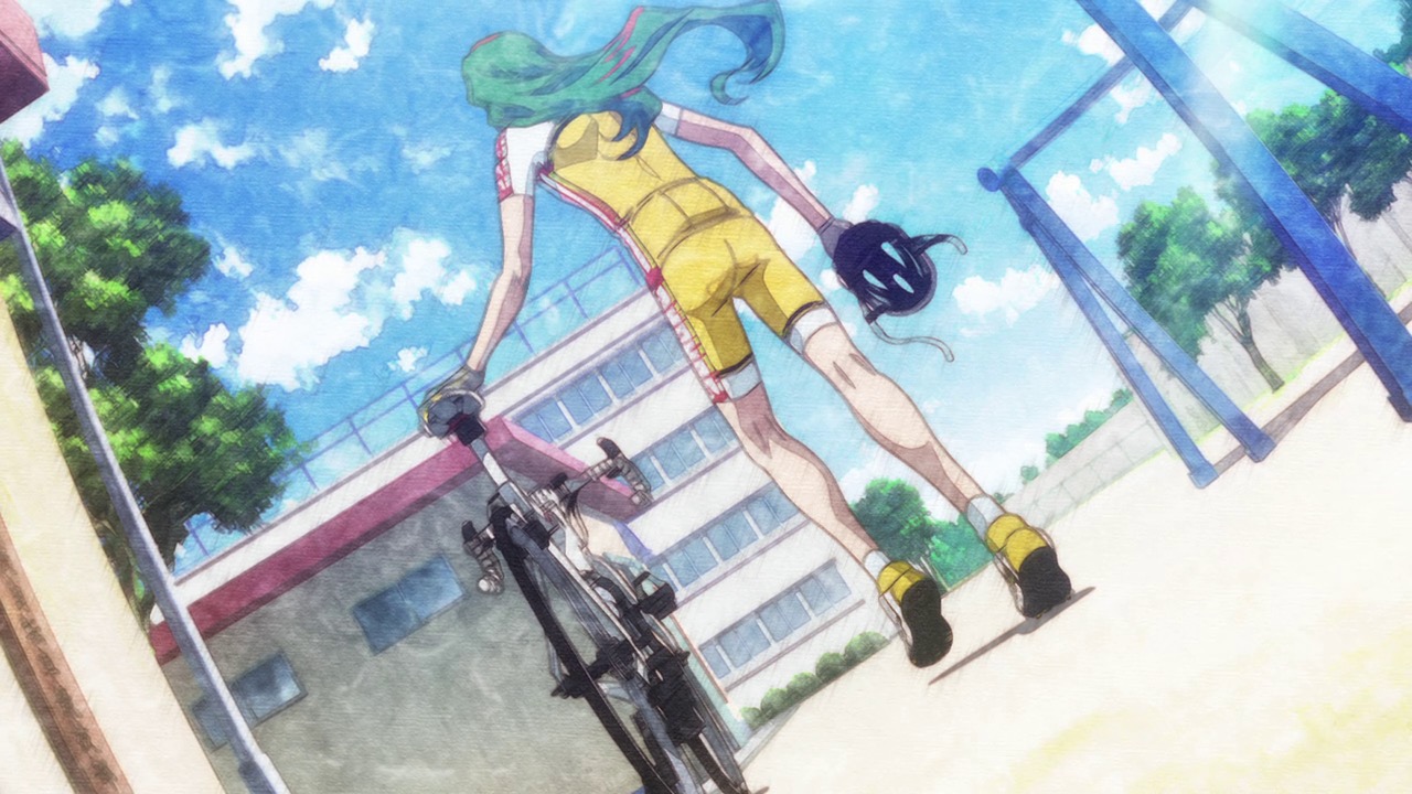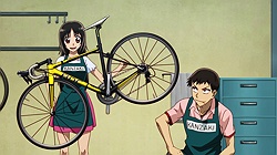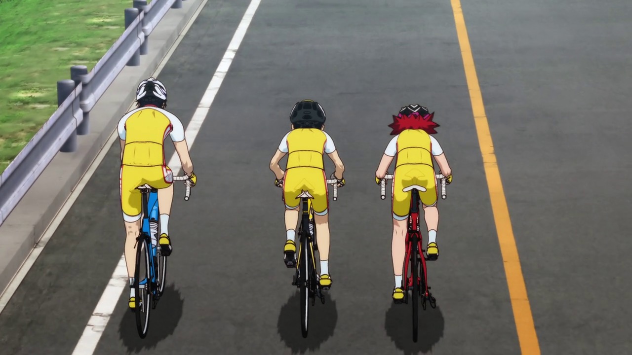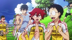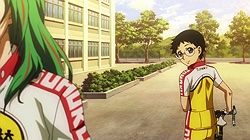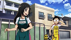 “New Generation” starts off with one of the most delightful subplots in Yowapeda, Onoda’s mom – specifically, Naruko and Imaizumi trying to explain to her why her son took his bike up Mt. Fuji without telling her. What they don’t know of course is that she was at the Inter-high, though she finally spills the beans here. She’s great – a loving and slightly daffy anime parent who totally fits. We also see the three first-years showing off their hot new gear: a new frame with an electronic gear shifter for all-rounder Imazumi, a light carbon-fiber frame for climber Onoda, and dense carbon-tubular racing wheels for Naruko.