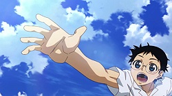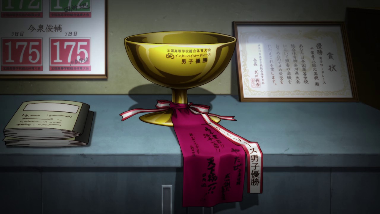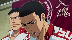 The real drama here, though, surrounds Makishima. He’s going off to England to live with his brother and go to college, but in typical Maki-chan fashion he’s kept the news to himself – not even telling Kinjou and Tadokoro. The one this is going to be hardest for is Onoda, of course. Maki and Sakamichi may be my favorite sempai-kouhai relationship in shounen manga – it developed so naturally from awkwardness to affection to mutual respect to brotherhood. I’ve read this part of the manga so I knew what was going to happen, but the entire sequence starting with Sakamichi and Maki-chan’s meeting outside the clubroom (where Onoda vibed on what was about to happen) to their talk on top of Minageyama was still heartbreaking. Sakamichi’s adoration of Makishima is so authentic and typical of boys his age, and you can really see what the relationship has done to help the socially awkward Makishima grow as a person.