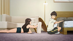 Jounichi sticking around in the friend zone with Haruka. Jounichi’s commitment and affection are clear, but Haruka’s refusal is accepted. Instead of being pressured or annoyed, Haruka starts to enjoy his company, teasing him for fun. It’s an unstable false happiness, as Jounichi tries to restrain his feelings while Haruka doesn’t admit her growing one.