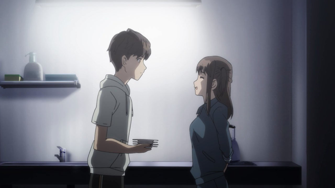 Hikari staying behind and insisting on cleaning dishes isn’t a contrived shipping moment- it’s Hikari giving a personal farewell to Shouichi. For what? Not just helping her the previous night, or the clothes, but for standing up for her. They just had a four-person dinner with witnesses that can attest that it was nothing untoward, but the dishes is a private and personal thank you before she’s gone. Before she leaves, and doesn’t bother him anymore with her rumors.