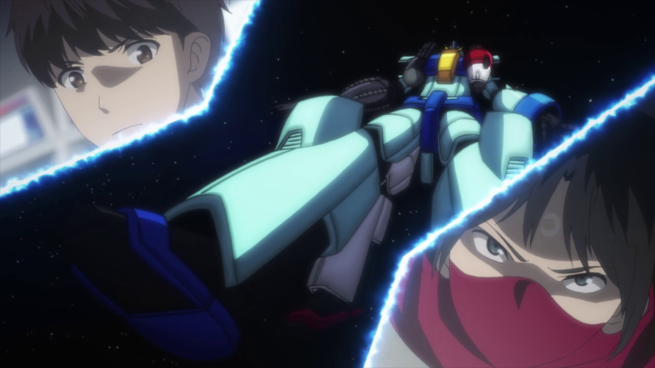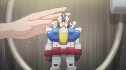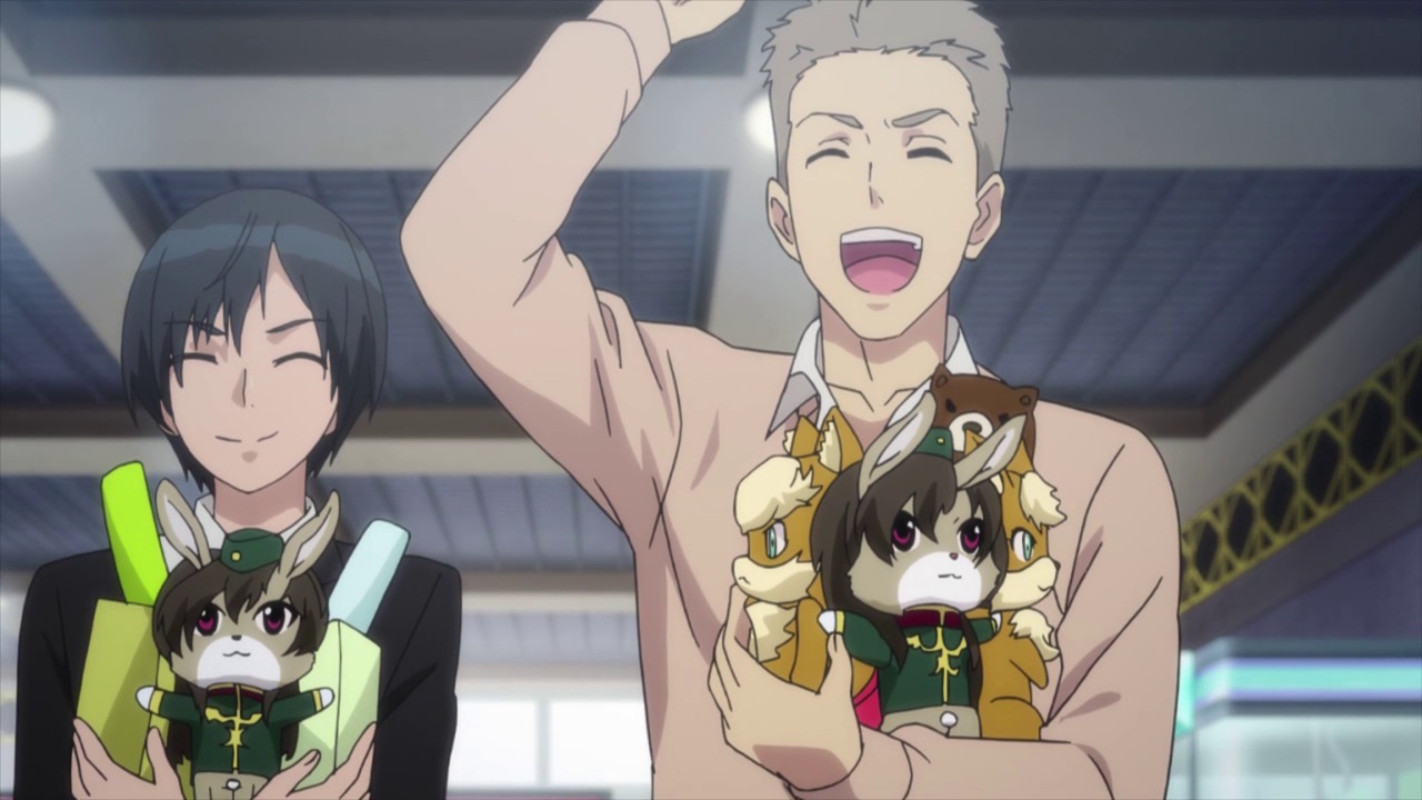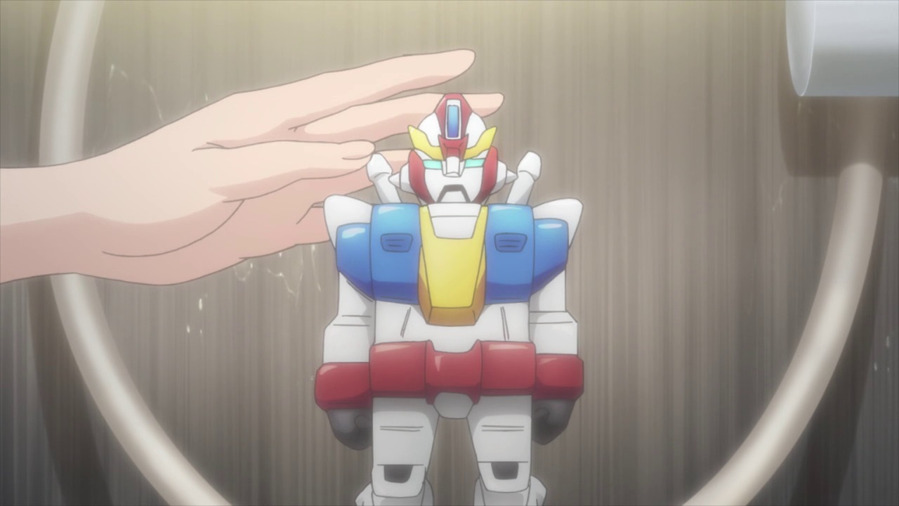 Beat two, the First Major Conflict that brings the protagonists closer together, started at the end of the episode. It’s not clear, but it’s probably not the mystery man/family member at the very last scene of the episode- someone I bet is part of the reason Tooru wants to keep her hobby and cosplay secret. Rather, the Second Beat was the prosect of competitive play on the not-gundam game, and Tooru asking Shouichi to be her partner as she gets back into the game.