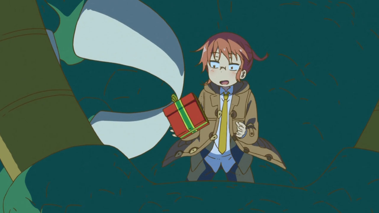 dragonfish-out-of-water type situations. You knew it was going to be a matter of just how bad will they screw it up early on & all played for comedy so… Ultimately, wasn’t the funniest stuff though I probably didn’t get all the references (damn, that little match-girl story is pretty dark!), but had a couple amusing moments – even during the play. *shrugs*Unsurprisingly, the best moments were with Kanna – this time as she waited for Santa. This was both funny and quite endearing. Nice job.