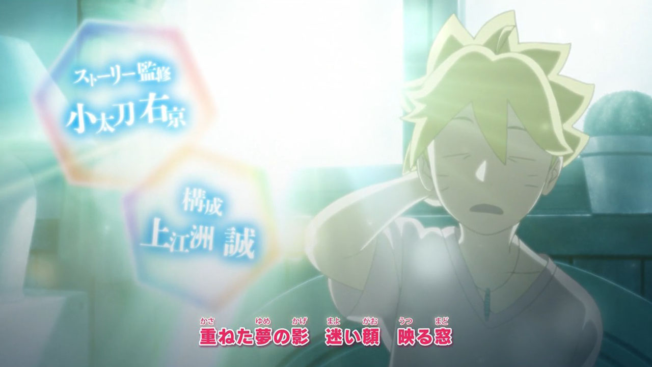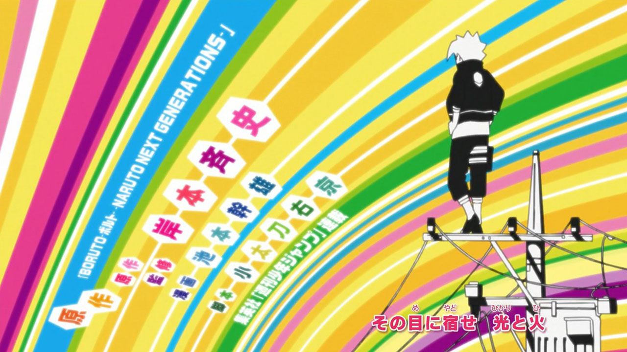 Although Bleach’s 15 OP Harukaze had some similarities, I was more reminded of Persona 4 Golden’s OP, both in terms of style and aesthetics.I was also getting pretty tired of the constant flash backs and filler episodes, but I think you will find less fillers for Boruto as the TV anime plans on doing a lot of original work that will naturally focus on a lot of character development, due to the new generation all being so young.