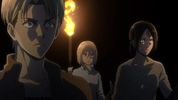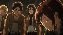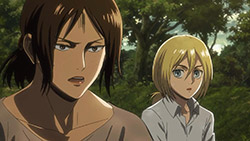With that in mind, there’s a lot going on in the background aside from the continued build up of questions, and perhaps one of the more underrated aspects of the season is how they’re not only emphasizing individual cast members, but using them, their pasts, and their respective hometowns to add in an extra layer of drama. The pacing’s likely slower than what some would prefer, but it’s given the series a moment to give its characters a vital fleshing out they’ve been lacking for the most part, while emphasizing the importance of what it means to be a member of the Survey Corps and a soldier in general. As our Scouts have found out the hard way, there comes a time where you just gotta do what you gotta do, and that’s regardless of whether you’re properly equipped or just signing up to be Titan fodder to give others a fighting chance. Through it all, there’s a whole “fighting for a greater cause” versus “doing what’s best for yourself” aspect going on here, and it’s certainly made for some interesting reactions so far.