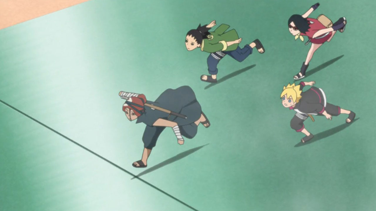 Uncovering the truth – we’ve turned from shounen battle anime to elementary school detective mystery.Speaking of which, I think that Boruto playing Shino’s struggles as drama is proving a good decision. Having something pivot from comedic relief, into a serious plotline presents multiple dynamics colouring the context of the situation in. Perhaps he will get more respect, but I think he’s currently satisfied with what he has for the level present in Ninja Academy after what he gained from his first fight with Iwabe.