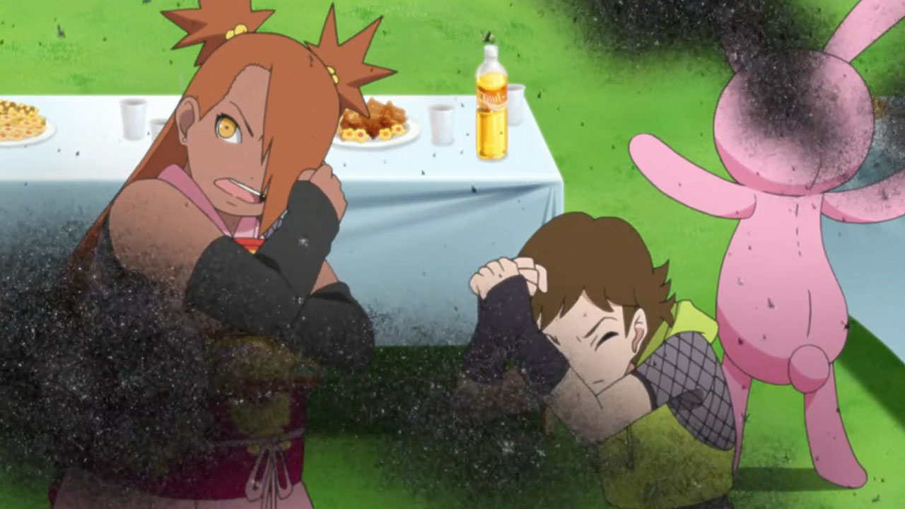 !! (Nazo no Tenkousei!!)”The Mysterious Transfer Student!”Shinos StrugglesInojin actually echoed a sentiment I had from last week: Shino puts in so much effort but is possibly misguided.Say what you want about Shino’s capabilities as a teacherbut Im quite glad that Pierrot have chosen to tackle it. I think these kind of flaws give room for potentially interesting character development, especially considering that Shino was probably the member of Konoha 11 who received the least amount of screen time in Naruto and Shippuden. It will be nice to see him being fleshed out, not to mention it gives us an insight to how difficult a teachers job can be, which is something we often take for granted.The PartyRegardless of his personal struggles, Shino truly has the best interests of his students at heart, which we can see when he throws Mitsukia welcoming party. Following the debacle where Mitsuki utterly defeats Iwabe, and almost strangles him to death, the party was a really good icebreaker helping Mitsuki fit in better after a rough start. Seeing Shino throw in gaudy attire was really weird, and I probably had a similar reaction to Sarada. But this goes back to what Im saying about Shino going the extra mile but in a possibly misguided manner. You cant really fault him for trying his best in his own weird way, and I just want to see him succeed!Unfortunately Sarada jinxes the party, by commenting on how well its going! Saying stuff like that is just an invitation to opening a whole new can of worms. His luck and the party trick with the bugs both went horribly wrong and the worst case scenario transpired. Chaos invites more chaos and as some of the construction progress is destroyed by Mitsuki with a blast of wind jutsu. That wasnt supposed to happen!Seeing Shino try his damned hardest only for it to turn our really poorly made me feel really sad for him. You could see how much though and effort he puts in, how delighted he is when things seem to finally go well, only for it to be cruelly robbed when things go catastrophically wrong.It was totally crushing to see how badly his failuresaffected him, especially since we got to see him worry so much about how he could become a better teacher.The After PartyWhat hurt even more was how little the children seemed to appreciate his best efforts. Everyone laughing and being harsh towards Shino made me angry, but thankfully Shikadai learned from the mess he caused with Metal, when he scolds everyone and asks them to reflect on their behaviour. Only it came too little too late – the damage was already done.I was worried that Shino would get horribly chewed up, but fortunately, Iruka sensei is now a principal and offers some really nice emotional support befitting of him. However, it doesnt seem to be enough as Shino gets possessed by the dark chakra shroud, and invites Boruto, Mitsuki and Shikadai out for a private lessonConcluding ThoughtsThe fight sequence choreography was as good as always. On top of a spinning kick to apprehend the rabble rouser at the beginning of the episode, we were treated to a taijutsu exchange between Mitsuki and Iwabe, and a coordinated takedown of a builder corrupted by the dark chakra shroud. COMPLETE WITH THE BORUTO RENDAN. Seriously, even if it was accidental, it was such a nostalgic throwback to the original series.Anyway with Shinos Terminator Mode activated, alongside the recent slew of impressive action animations, I look forwards to seeing how kids who arent even Genin can weigh up against him. Speaking of which, Im surprised Boruto hasnt tried to tell anyone about what he could see with his special eye. If you think about it, maybe this situation would not have escalated so far if he had informed an adult about these shifty ongoings, which would have alerted them to be cautious against any potentialthreat.My observations indicate a pattern across the individuals affected by the malevolent dark chakra shroud they all exhibited signs of emotional stress. This makes me wonder about the potential for the dark chakra shroud to possess Naruto, in the event Boruto says something incredibly hurtful to him. Before speculating too far, I will bring this episodes post to a close. Preview