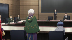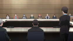 In this episode, Meteora’s explanation is not so much used to provide us with new info, but mostly to show us how she convinces the SSCC and the members’ reaction & impression towards her. It helps that she talks nothing but facts and relevant theories & hypothesis with not much fluff and all of them delivered with confidence and no stutter or any other issues. That’s exactly what the boards want to hear: a good and knowledgeable speaker that can represent the fictional people.