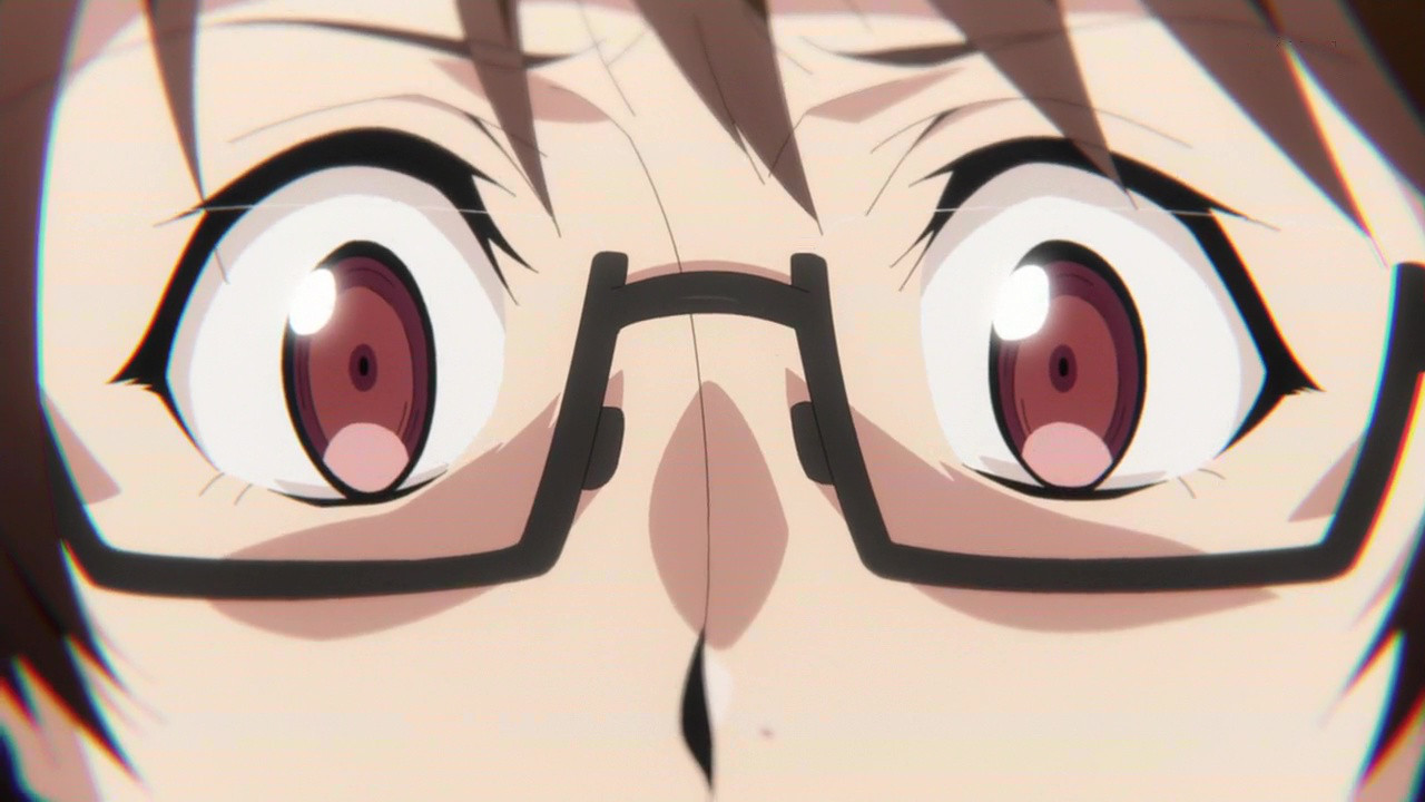 There was a glasses girl who killed herself back in Ep 1’s opening by jumping in front of a train. Souta’s flashback to meeting this girl, his recognition of the fanart video, Gunpuku’s musings to avenge her (alleged) creator Setsuna’s death, and the emphasis on this girl in the OP led us to believe she’s Shimazaki Setsuna.