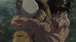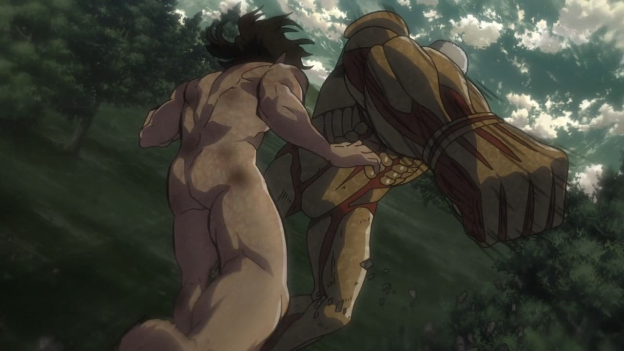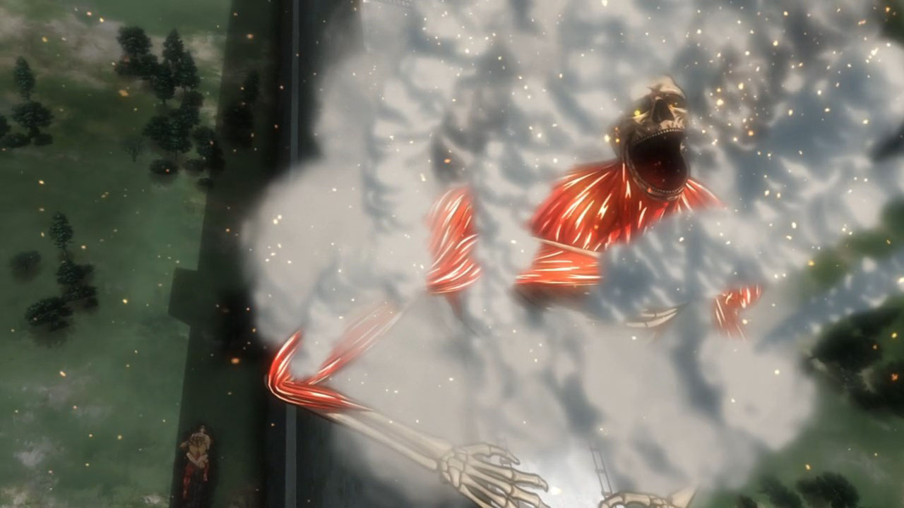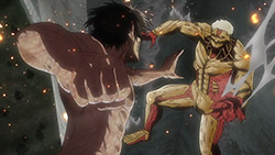 I mean, the sheer amount of action-packed goodnessmostly in the form of classic fisticuffs no lessis something that not only makes the wait worth it, but also shows off just how strong the Colossal and Armored Titans are individually. The former’s size and steam defenses make it literally untouchable, the latter’s armor makes it just as strong, and suddenly we’re put into a perspective where we realize how powerless the typical human truly is in the grand scheme of things. Even with Eren in his Titan form using Annie’s techniquesthe irony!what we get is only the near defeat of one, and at the cost of many injured and a great deal of pain. With the epic toss over the side on part of Bertholdt though, it seems like even that result won’t hold, andassuming the fight ends in a stalemate and both sides retreatthings look more grim than ever before.