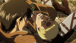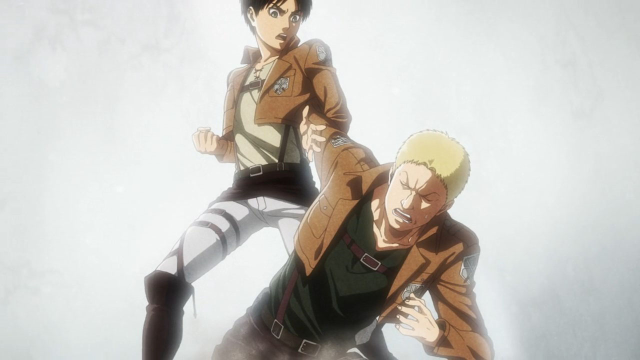 Paraphrasing from last episode:Bertholdt: Eren, you can end all of this right now. You only have to come with us.