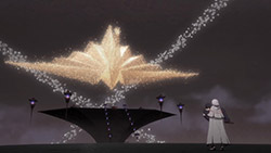 All that was a very long-winded way of saying that I came away from the first few episodes of Seikai Suru Kado with an idea of what it was doing, and I don’t think it unreasonable that I did. And I think that, whatever Kado was to begin with, it eventually threw that all away and went in a very different direction. I’ve been trying to justify that decision in my head, and I can’t really find a good way to do it. I mean, I don’t mind big plot twist per se. Laser swords are cool. And I had been saying from the beginning that it’s only natural that Za has his own agenda, benign or otherwise, and he will have to reveal it at some point. What I didn’t predict, though, was this agenda eventually undermining everything else the series had been about before that point.