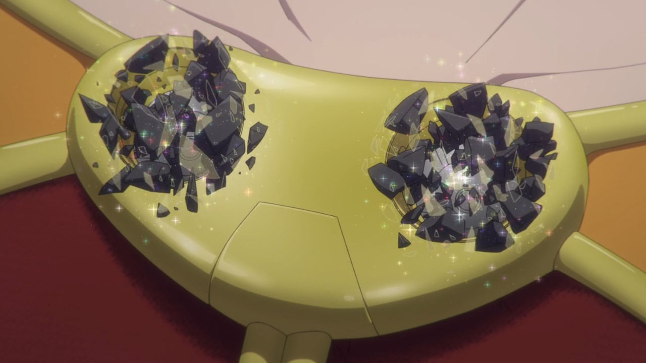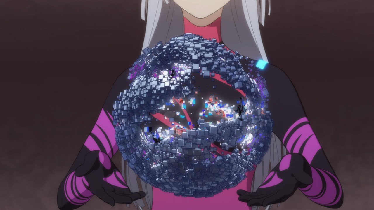 Welp, that was the biggest asspull I’ve seen for a long time. I mean, I’ve seen deus (dea?) ex machina endings before, but this one takes the huge Kado-shaped biscuit. That said, I still really enjoyed it! But how, you say? Well, read on.My headcanon is that we are all missing the fact that when Saraka is in anisotropic mode, she can move through spacetime – so not just 30 spatial dimensions, but also time as well. Of course, even she needs the Nanomis-hein to seriously screw with time, but even without that she can move between the past and the future, or at the very least, see it and even send objects there. So the god girl wasn’t a big shot in the dark, Saraka knew it would work. She also knew Shindou would die, but really he knew that too because Saraka says just after his death that his plan was complete and so the Fregonics nullifier was actually a double-bluff.Her abilities might also explain the ring that appeared on her finger at some point after she left home for college – it was her wedding ring from the future, but she also used it as a limiter to hide that knowledge. She’s very vague about the ring when she’s wearing it, something about a promise she made (so her wedding vows), and it shatters the first time Shindou is in mortal danger, signifying that it’s about a promise she makes with him.Anyway, whether I’m right or not, there’s a whole lot more thinking needing to be done about this series before writing it off as a disaster.