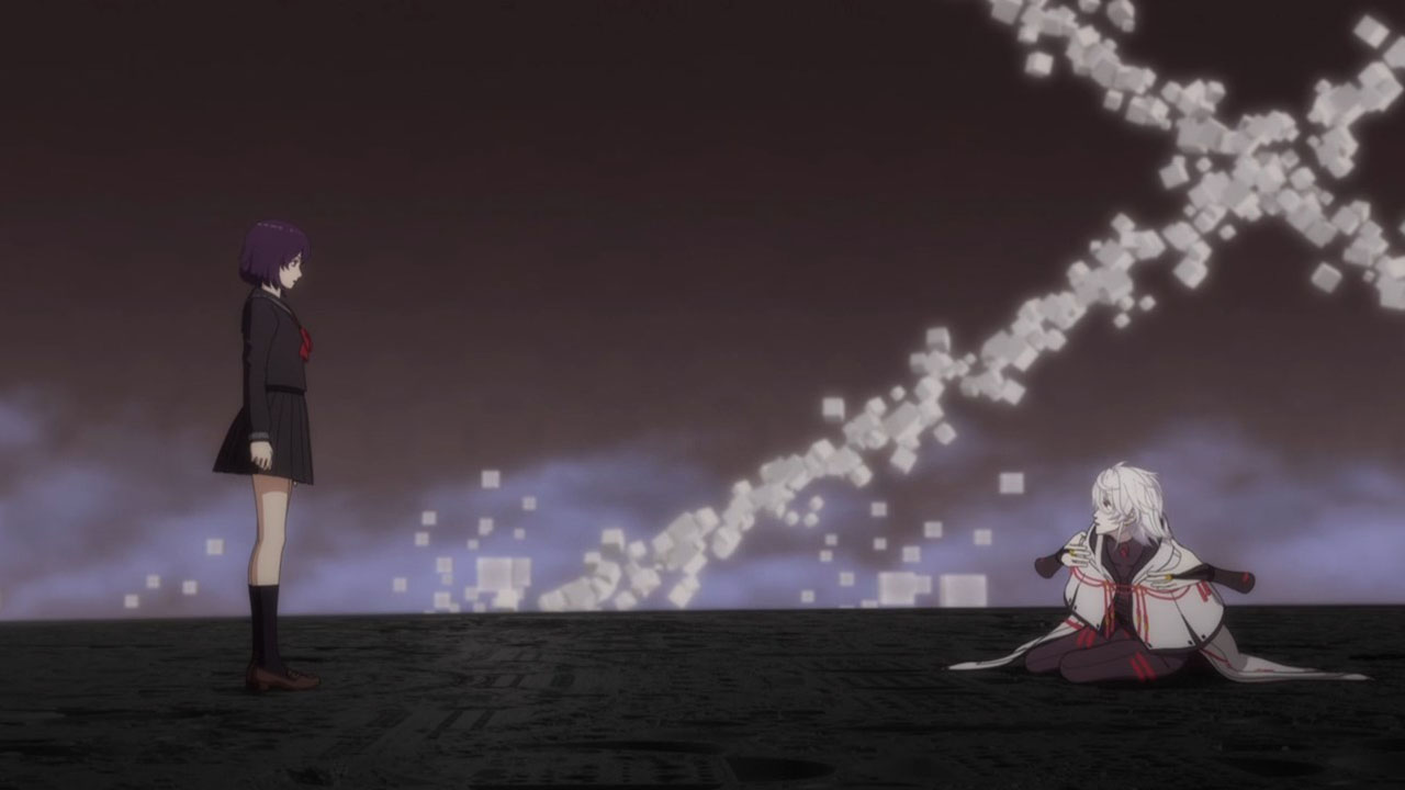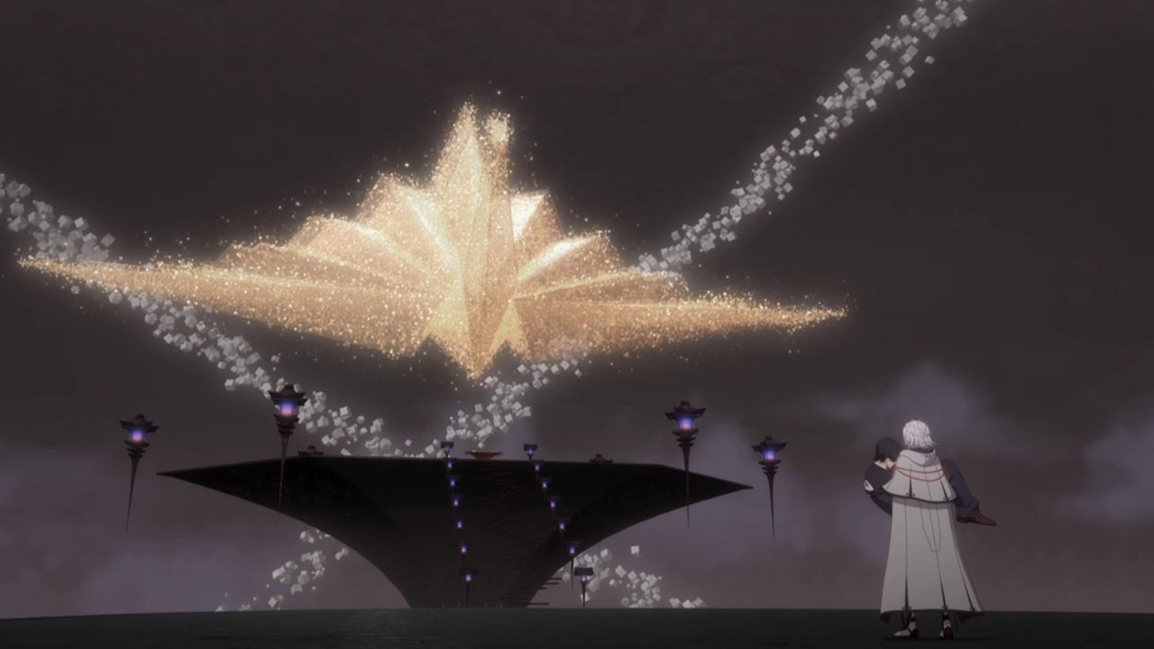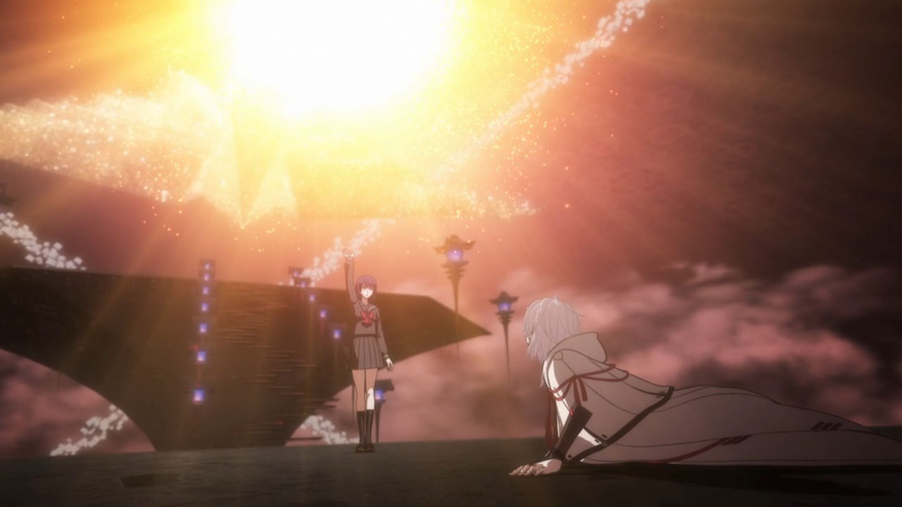 Coming into the finale of Seikai Suru Kado, I can’t tell for sure whether it has gone completely off the rails, or if I just haven’t been paying enough idea. I thought the Prime Minister of Japan was swallowed by Kado last week, but here he was in this episode, with no ado. I’m still not sure why traveling to the anisotropic would destroy what makes us essentially human, except that it just does. And I missed the part where human + anisotropic = omnipotent god child. Since I really could pick at the finale all day, and I’m not sure if it’s just me, I think it would behoove as all to take a more holistic look at Kado instead, and try to puzzle out the series from there. Therefore, straight to the finale impressions.