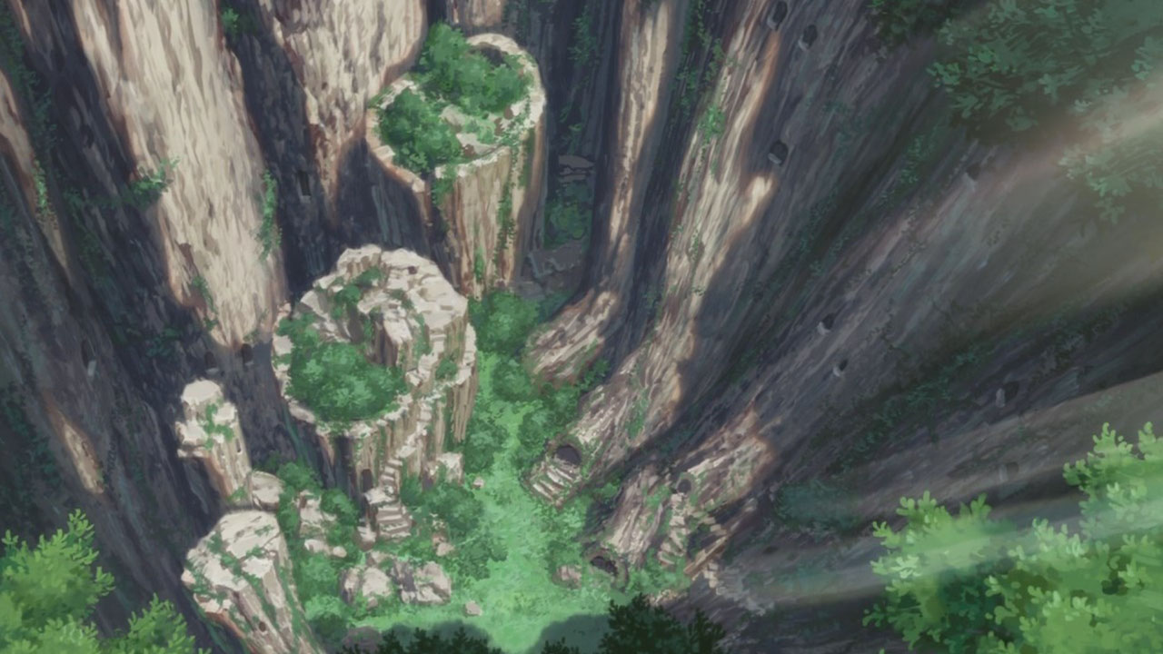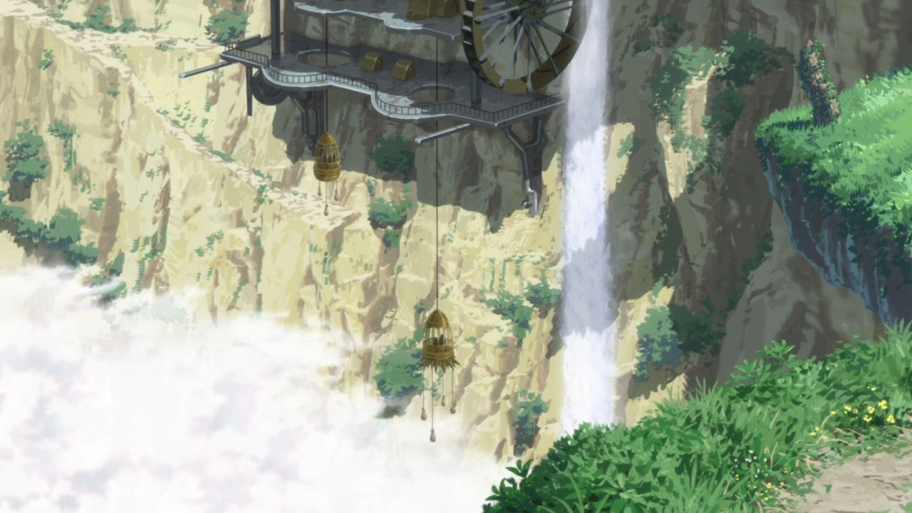 @BlueI understand your needs, but I don’t want to just summarise either, as that provides little value to those who have watched the episode, which is the majority of our readers in the age of simulcast. I will try to strike a better balance next time. I assure you, though, that in this case when I don’t talk about the characters at all, it’s because I didn’t see them as very important. What is dominant in this pilot is the world, and the central hook that it presents to you, why you would want to watch this show, is the explorer fantasy. It’s why I noted the peculiar character designs; it’s to put even further emphasis on the world, and have all characters be defined by it. The protagonist is simply one with a drive to explore the Abyss. The robot boy represents the mystery of the Abyss. At this point, our interest in them is contingent on our interest in the Abyss.What I was trying to say in the post by comparing Made in Abyss it is unquestionably of a videogame genre. If you’ve been exposed to any of the games I mention, especially Etrian Odyssey, you’d be able to instantly tell from where Made in Abyss derives. Videogames have dominated here because they express the explorer fantasy so well, being able to put the exploration in the hands of a player. The advantage that anime has is in visuals, and so Made in Abyss makes sure to come out the gate really hitting us with some breathtaking backgrounds, so that we will want to see more of its world. I’ve tried to take shots of the backgrounds liberally, so if you still want to know whether you should watch Made in Abyss, have a look at the screencaps and assess whether they inspire you to want to see more like that.