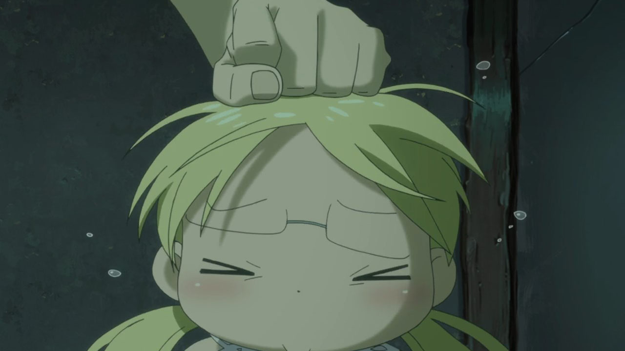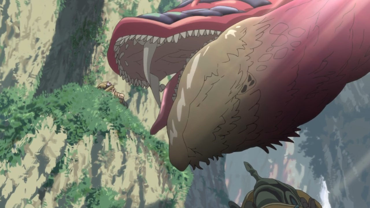Indeed, Made in Abyss is a pretty anime. Very pretty. Almost unreasonably so. I can imagine it costing a background artists many hours to craft each scene. I am reminded of the breathtaking wonder when one is confronted with the lush backgrounds of a Miyazaki film, especially Castle in the Sky Laputa. Surely, I can’t be the only one who expected a trumpet solo as the sunrise caressed the mining town? Any comparison to Miyazaki, the high priest of all things good in anime, must surely be a good thing, and one can spot some shared techniques. Like in Laputa, the relatively simple character designs of Made in Abyss (mostly round, blobby children for our protagonists) places emphasis on the backgrounds. Each character must be seen in the context of their world.