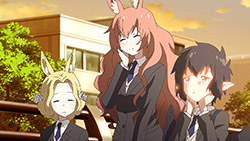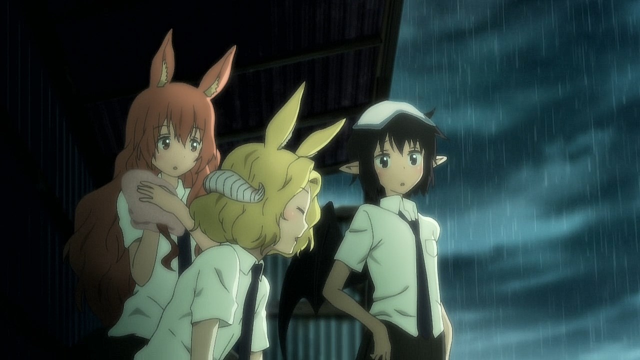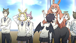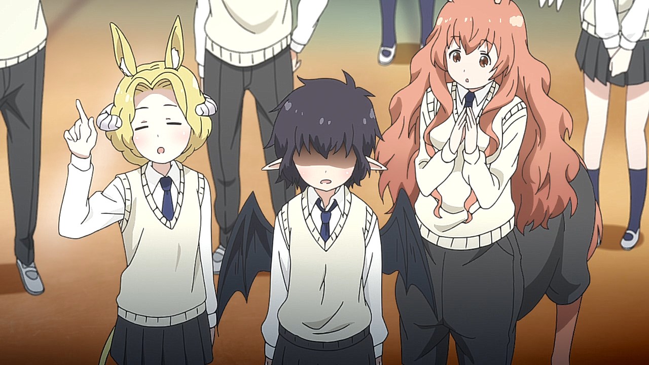 What I expected: A “cute monster girl” story (a monster girl and her interactions with regular people and fellow monster girls) in the vein of Daily Life With Monster Girls or Interviews with Monster Girls. What I got: An alternate reality where evolution took a different path from real life, with the implication for those living in that reality that if it did went that way, there would be no such thing as racism or discrimination. (Hahahahahaha. *sighs* The grass isn’t necessarily greener on this side…)Man, that heavy infodump was heavy. And the serious topics lurking underneath this otherwise C(M)GDCT show makes me wonder if the existence of such anime/manga has opened Japanese to the discussion of things like racism and discrimination.Well, guess we’ll find out in the following episodes.