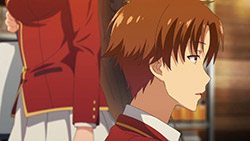 Well, at least it’s better than what I thought it will be. I for one feel okay with the MC’s character and voice. It doesn’t remind me of Hikigaya, which is good enough for me. Ayanokoji have indifference in his voice, and I think that fits with his disinterest to everything. Maybe his disinterest may also be why he’s in class D in the first place? This first episode seems really similar with Oregairu, loner MC(kind of) meets another, then a cheerful social girl comes along. But with the setting, it’s expected that everyone in the class will have a role and their own moments. It may not end up being a good one, but at least I hope the anime can separate themselves from other anime with similar setting.
