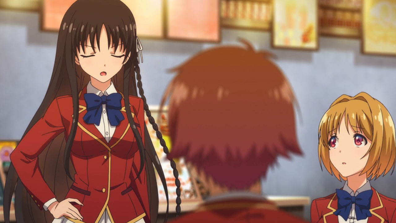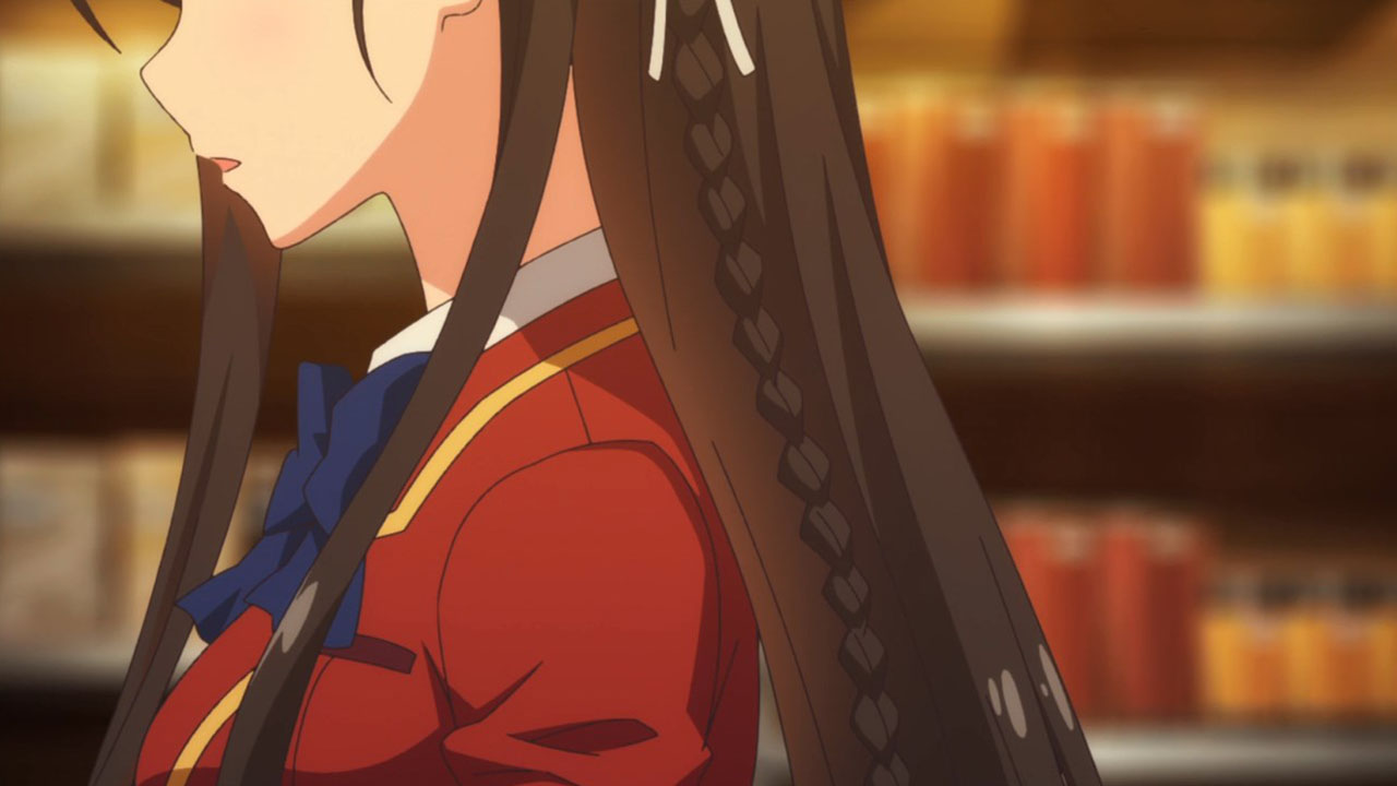And that’s the key. Kiyotaka starts out so damn uninterested in everything that’s going on around him that I found it hard to be interested in him. Initially. Then wants-to-be-friends-with-everyone girl Kushida Kikyou (Kubo Yurika)—side note: calm down, girl. Friends aren’t pokemon to collect—recruited him to lure Suzune to the cafe so she could friend-ambush her, and I realized that Kiyotaka is oddly daring for such a laid-back guy. He also admits his screw-ups, though he also doesn’t do anything to fix them. Uncaring characters like Kiyotaka are hard to do right, because that passivity is poison to audiences, and the same can be said of Suzune as well. The glimpses of maybe something else, though, make me interested, even if I remain unsure.