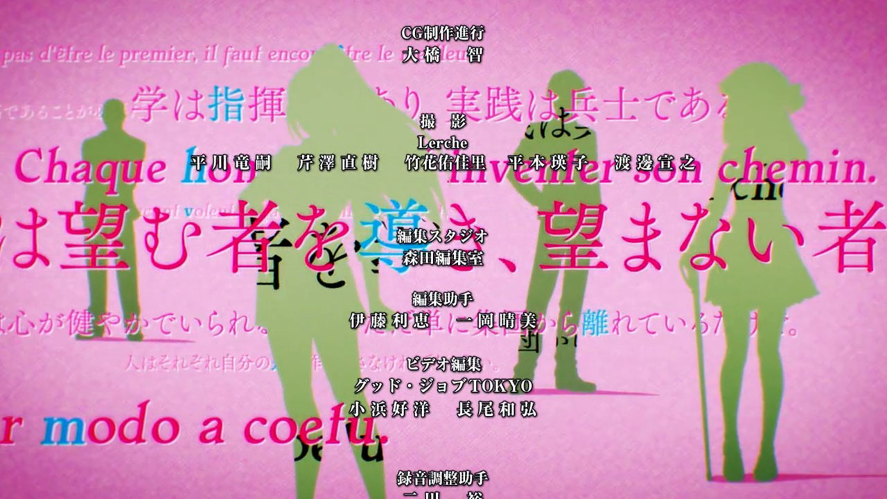 I honestly didn’t expect to like this as much as I did. A setting like this makes someone like Suzune pretty perfect. By being friendless, she can avoid having inclass distractions, which would deduct from her monthly points. By not indulging herself in her spendings like many others do, she pretty much follows exactly the intended trajectory this system aims for. I can only assume this system’s goal is to shape the students into better members of and contributors to society, but how the system intends to go about achieving that goal (if it is indeed the goal) is still unknown (and a bit questionable), as this episode didn’t provide any hint towards that. I’m definitely staying around for this. I didn’t think I would, so this was a pleasant surprise.