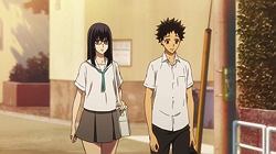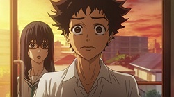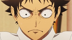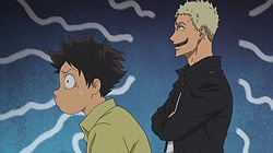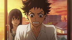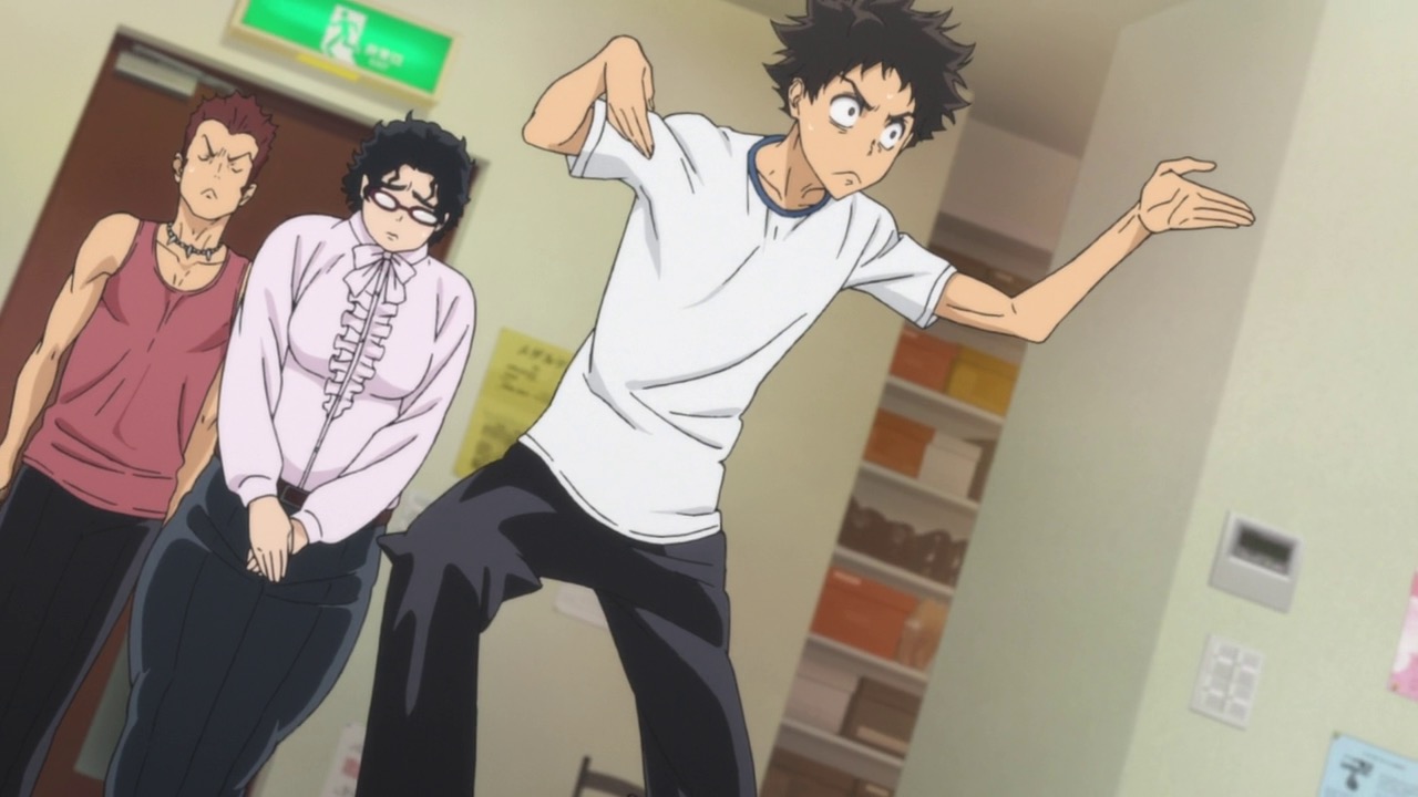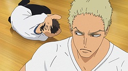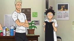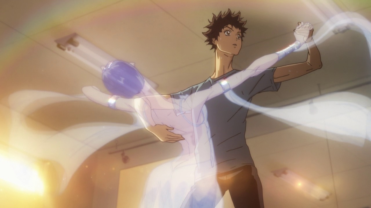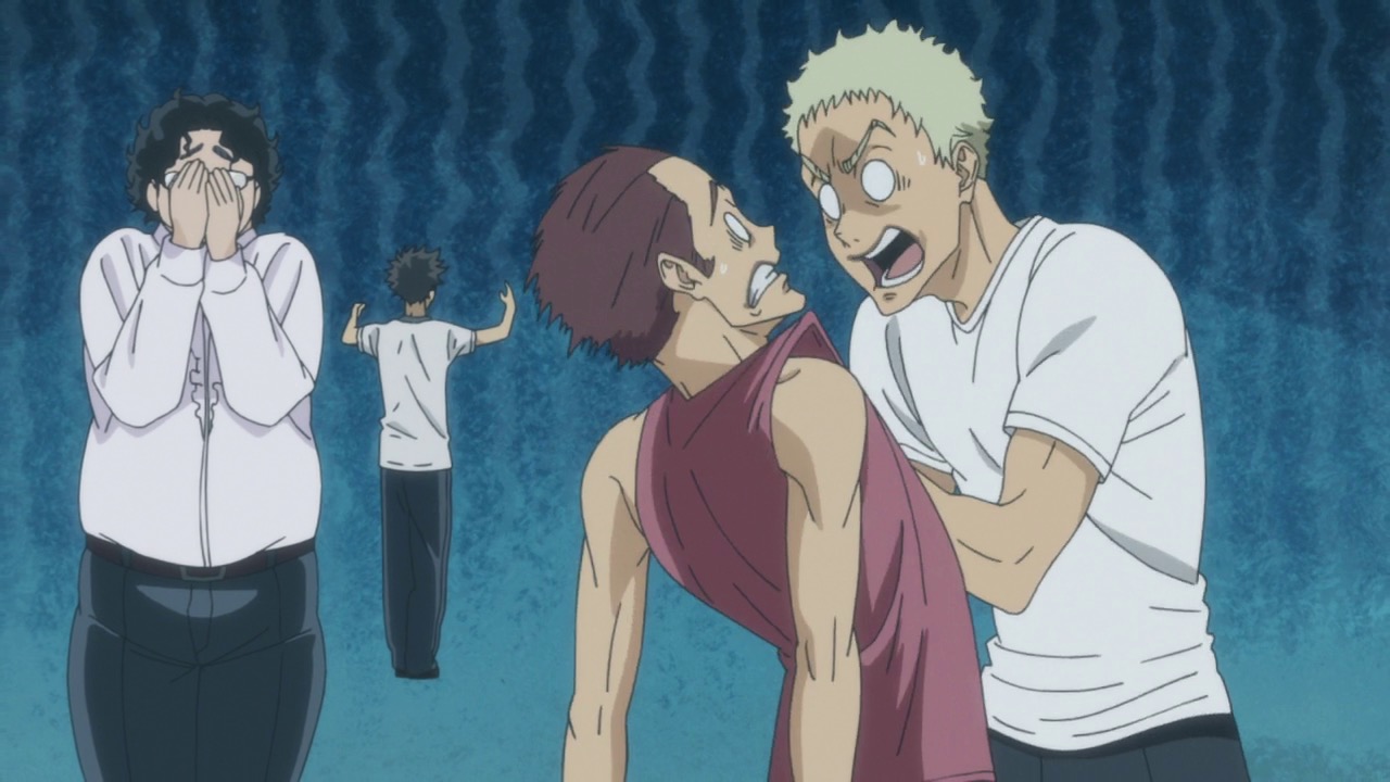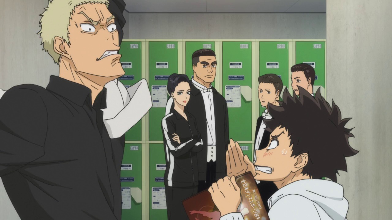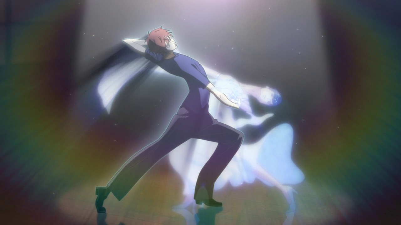 I’m going to be interested to see how this episode of Welcome to the Ballroom plays with the viewing public. Having seen the first two eps of the series at Anime Expo I already had a pretty firm opinion, namely that this ep was substantially better than the premiere (which was quite good in its own right). Stage-setting is hard, and sports shounen often seem to take a bit of time to find their stride.In the final analysis, I think expectations will have a lot to do with how this series is perceived. The notion of a series about ballroom dancing carries a whiff of something exotic and unusual (though dance manga have had a minor boomlet in recent years). But in point of fact, I think it becomes apparent quite quickly that Ballroom e Youkoso is quite a conventional story – Haikyuu!! is the obvious comparison but by no means the only one. Thing is, though, calling a show conventional is not a criticism. Chihayafuru is likewise a series that quickly reveals itself as fairly conventional despite its unusual premise, and even Boku no Hero Academia – while obviously not sports-themed – is a very traditional shounen in terms of structure.In the end it all comes down to execution. Are the production values strong? Check – Team Haikyuu!! is on the job. Is the main character relatable? Roger – Tatara has enough quirkiness and grit to lift him above what’s superficially a stock personality type. Is there a distinctive supporting cast? Is the core subject matter treated realistically, and does the work display a thorough knowledge of it? Do the original author and director have a sense of snappy dialogue and good pacing? Every bit of evidence suggests that the answer to all this questions is affirmative, and that makes Ballroom e Youkoso a good bet to succeed – probably winning itself multiple seasons of anime to adapt the manga in the process.More members of that supporting cast emerge as the story proper rolls into motion this week. First, Banba Karen (Kodaira Yuki) and Jinbo Tomochika (Horii Chado), the unlucky pair drafted by Sengoku-san to teach Tatara (they’re still students themselves, so his lessons are free). Inexperienced teachers and a student with poor concentration and no experience yield predictably disastrous results, but Tatara-kun’s spirit remains unbowed – especially when he sees Hyodo Kiyoharu (Okamoto Nobuhiko, admirably off-type) and Shizuku dancing together at an amateur competition (which they win).Kiyoharu is obviously an important character, the frival every good sports shounen needs. But he also represents something real and tangible in a way Sengoku doesn’t – Hyodo-kun is a boy Tatara’s own age, and he’s dancing with the girl Tatara is smitten with. Yet he’s also a stretch goal for sure – he already dances at a professional level (Shizuku claims even she’s not in his league, though there’s a degree of modesty in that I suspect), and even last year’s practice pants are too long for Fujita-kun. Kiyoharu is a fierce competitor but seemingly a flatliner when he’s not practicing or performing – you can see Tatara trying to psyche himself into believing the two of them are rivals, but the truth is that Tatara isn’t even a blip on Kiyoharu’s radar screen (yet).It’s going to be interesting to see how this triangle evolves over the course of Ballroom – will Kiyoharu wind up being effectively a co-male lead, as we have in Chihayafuru, or is he here mainly as a foil for Tatara? Again, Tatara tries to convince himself that Kiyoharu is spoiled, entitled – his family owns a dance studio and he’s been Shizuku’s partner since they were five years old – but the truth is, Kiyoharu busts his ass to be as good as he is. As for Tatara, his genius seems to be of the instinctive kind – explanations don’t do it for him but if he can watch, he can learn (and quickly). So much so, in fact, that he can already “shadow-dance” with Shizuku just from watching Kiyoharu do so a few times. There are already a lot of flags being hoisted in Ballroom e Youkoso, and they don’t all agree with each other – and to me, that makes the series that much more of an interesting prospect. Remember, conventional doesn’t have to mean predictable…