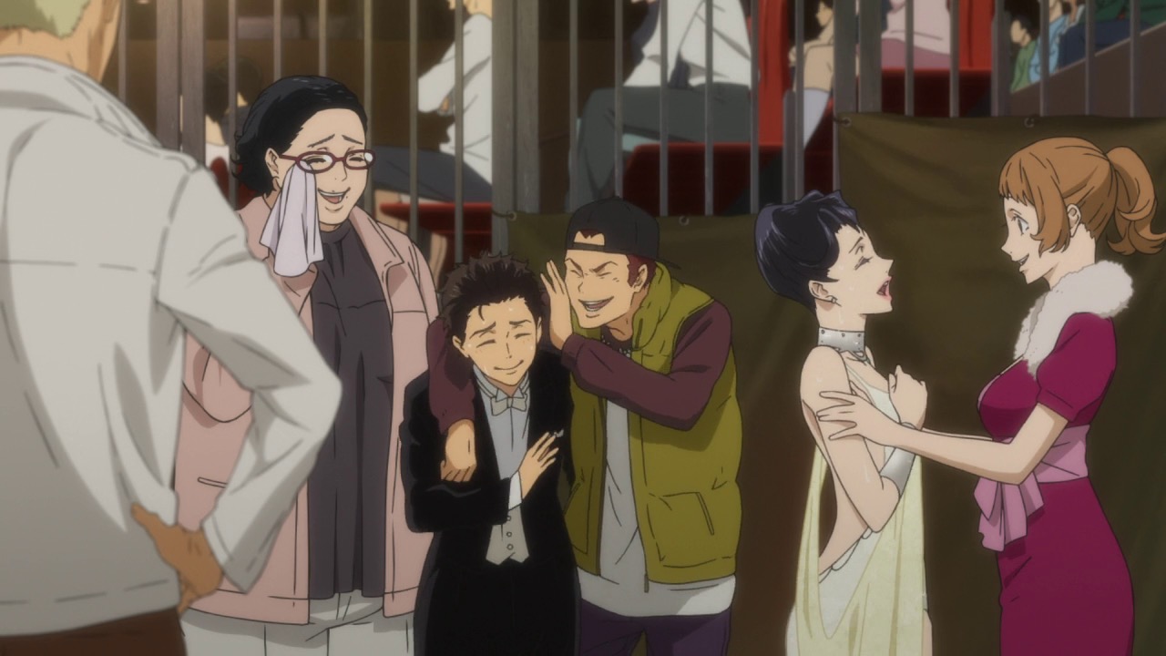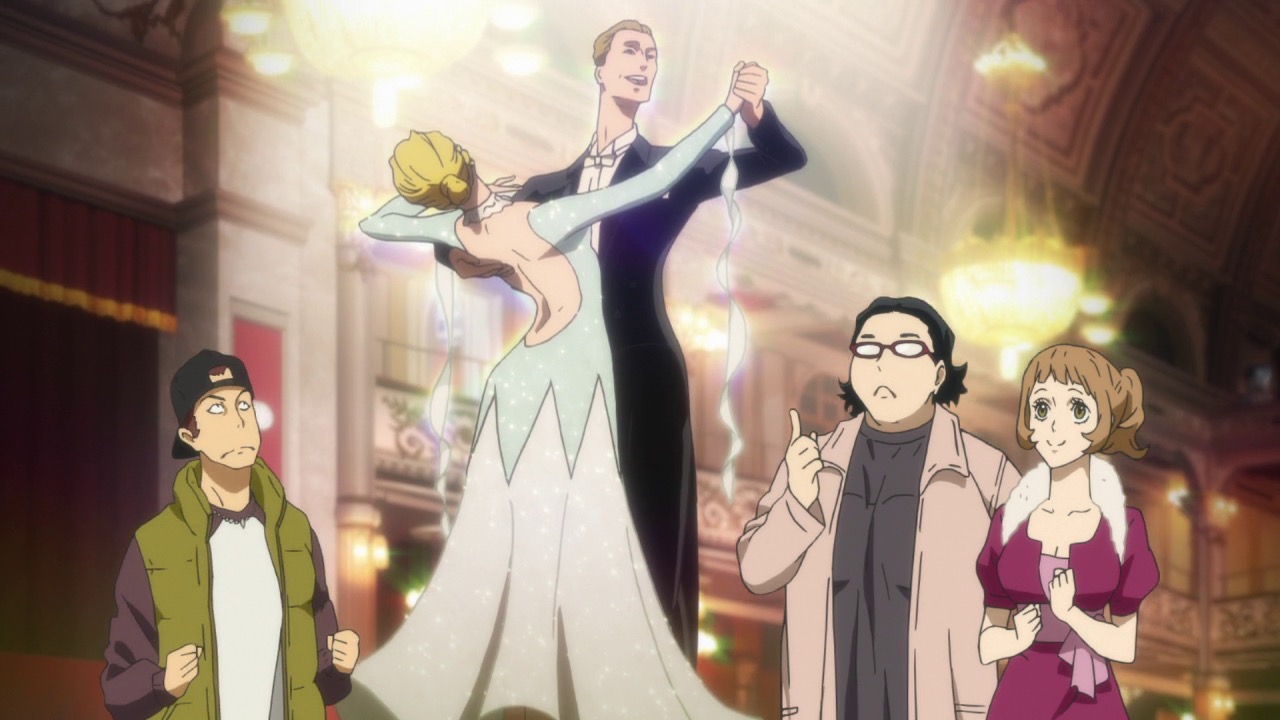 I’m enjoying how they develop Tatara as still very flawed, yet a quick enough learner to pick up on professional techniques and moves so he isn’t stuck doing the box step for the competition. One thing I’m worried about is how pissed Hyodo got from Tatara borrowing his moves to fill in for him alongside Shizuku. Not sure how the switch would impact their placement in the competition, but it might be what causes a bigger rift between Tatara and Hyodo. Also, I laughed when Tatara commented that some of the dancers had long necks.
