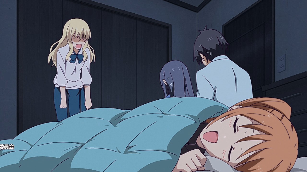 All while he’s sleeping. Yoshiko and the Prez couldn’t take any hints at all about staying quiet or calm when their impulses drive them towards being as disruptive as possible while Sayaka’s tearing her hair out.