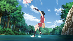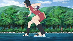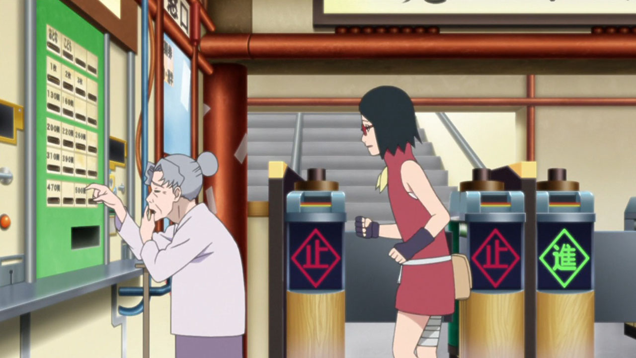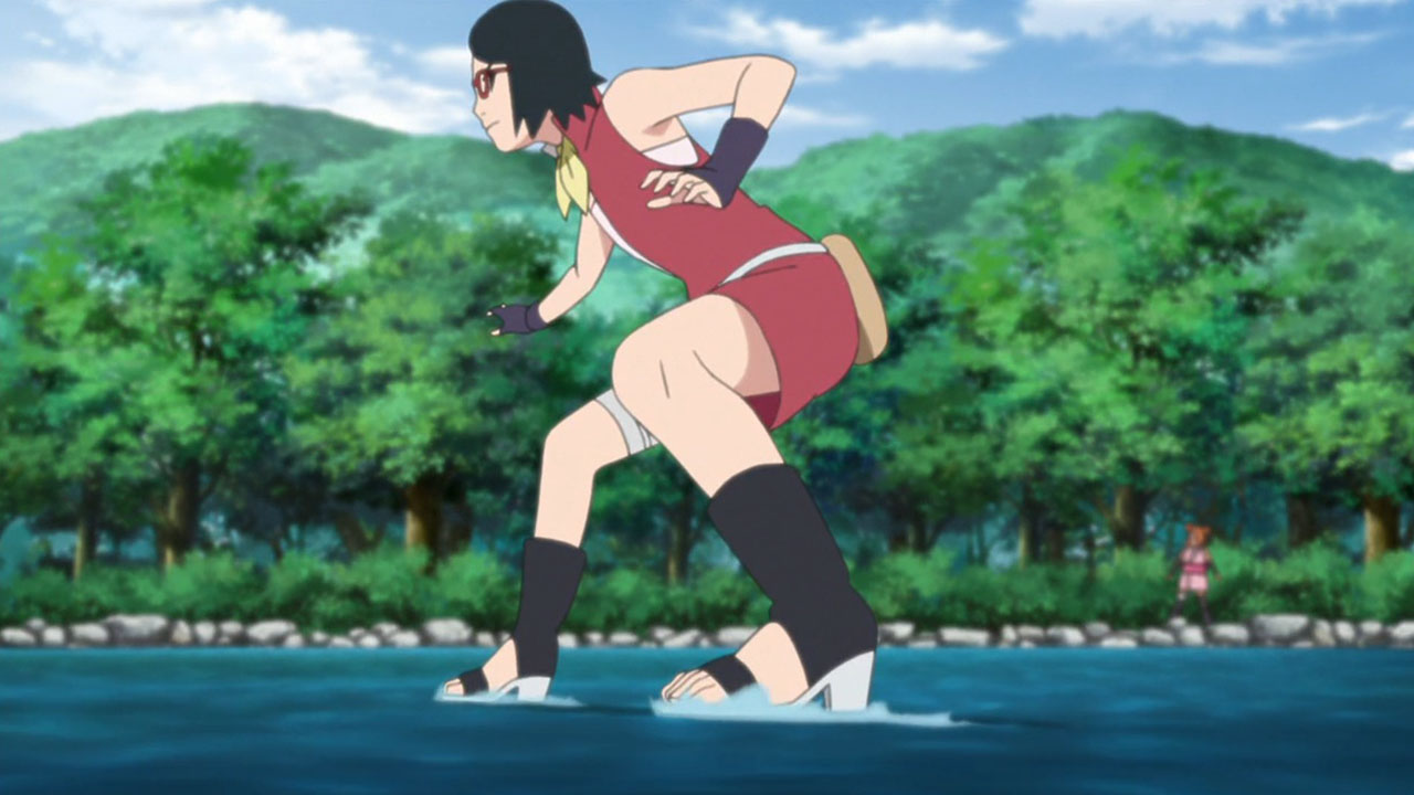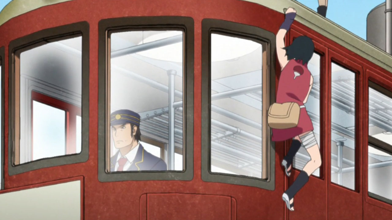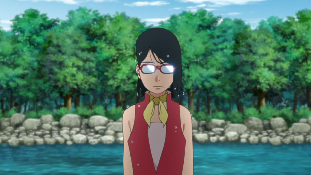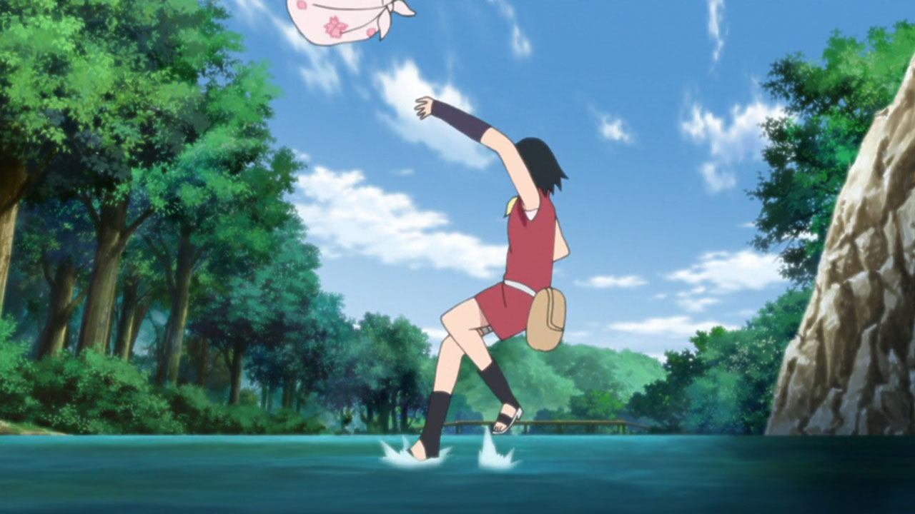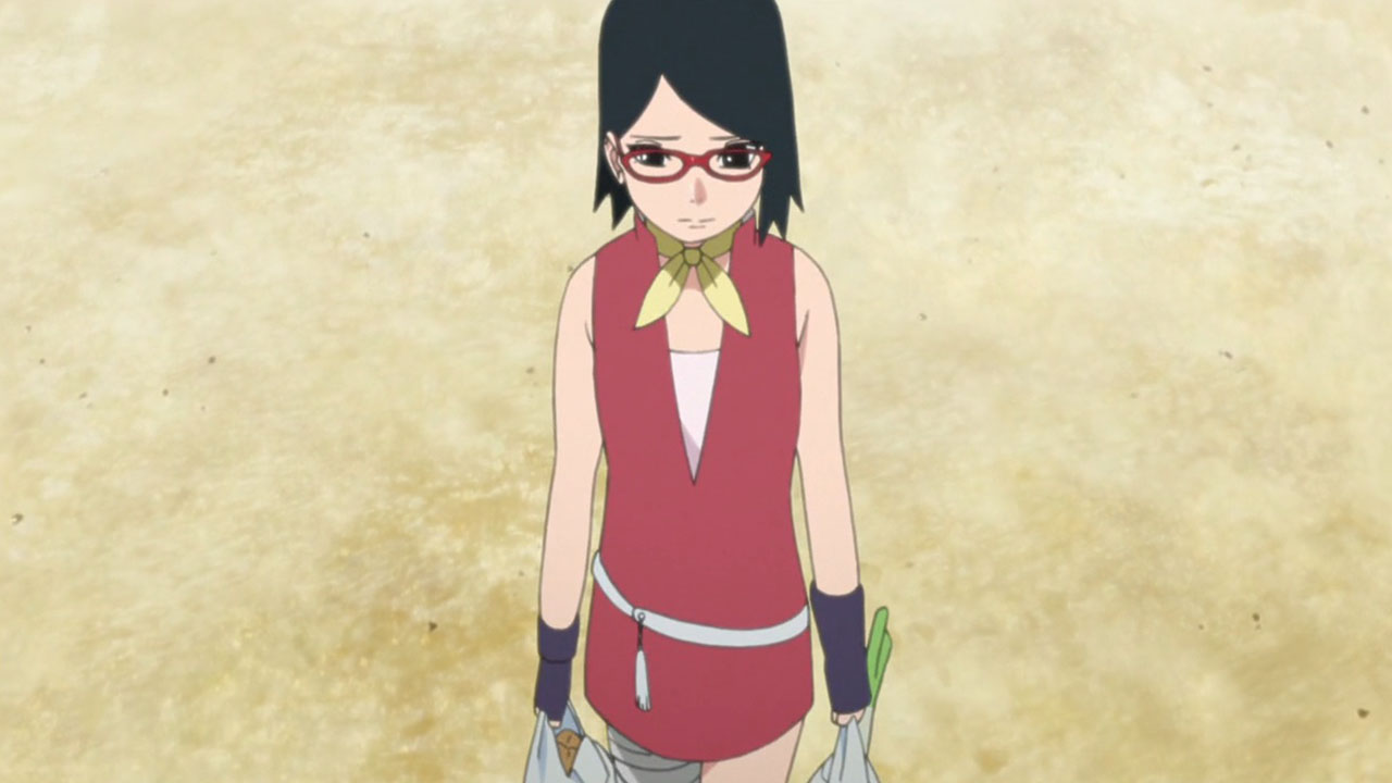 !! (Sarada, Hashiru!!)”Run, Sarada!”Sarada finally gets some focus for character development, receiving her own dedicated episode. Coming across as a mix of pre-Shippuden Sasuke and Sakura, she effortlessly combines properly prim with wannabe cool.Sarada’s Delivery Adventure!Promptly taking up her mothers request to deliver a fixed up soft toy, I couldnt help but notice she immediately agreed upon hearing that the teddy bear was a gift from the patients father. I feel this speaks of Sarada’s desire to be spoiled by her parents, in spite of her insistence that she needs no gifts. Nevertheless, she goes along with it, and what a troublesome ordeal it ended up being. Accidentally leaving the package on the train, helping out an old lady and barely missing out at the next station, almost getting caught riding on top of a train by Boruto & Co, nothing seemed to be going her way. Good thing ChoCho came to the rescue. Although she can sometimes come across as shallow and headstrong, she truly cares for her friends. Without any hesitation, she expends a truly rare snack item to obtain information that would help Sarada, as well as guiding her about the place with some handy street smarts. Ive actually come to really grow on her! Fortunately, they manage to save the teddy bear before it mistakenly ends up as a sacrifice for a waterfall ritual. Talk about a close shave! They probably would have used Boruto & Co as a substitute sacrifice instead.Concluding ThoughtsWe got an insight into the Uchiha household, where the father is largely absent and the mother busy with or taking a holiday from work. Yet Sarada stays strong, bearing the kind of burdens you wouldnt expect someone her age to carry. Doing all the chores including cooking dinners, shes the one who is like the adult, telling her mum not to worry. But something tells me this situation is untenable, with an inevitable breaking point down the line.This is just a taste of what were about to get with the Sarada Arc coming up soon. There isnt much to go into, since many things about Sarada will become fairly apparent when that airs. As for the next episode, I hope its more than just a visual upgrade of ‘The Day Naruto Became Hokage’, because that is exactly what it looks like we’re getting at the moment.Preview