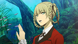 Where this mentality becomes important is in regards to the Student Council, specifically Kirari. The president is clearly in a league of her own when it comes to evileyeballs and allbut in a way she is similar to everyone else. Kirari wants to see her little microcosm of social Darwinism work, and for this she needs an obedient staff. Cue to poaching of people like Midari and Mary who break all preconceptions Kirari had regarding the fate of lesser beings. Anyone who breaks Kiraris world is seemingly brought on board to better perfect the system, ensuring Presidents entertainment is not cut short. At least until Yumeko turned up and screwed with things. Yumeko may not care about the results of her gambles, but they definitely impact others. Mary is the obvious example (and part of the reason for Marys notable change in mindset), but theres also Suzui and, of all people, Midari. Remember that proclamation of Yumeko as her new dominatrix god? Yeah that will come roaring back later when Kirari tries using her promise to Midari as leverage against Yumeko. Considering how quickly Yumeko is making inroads into the Student Council psyche, it wont be long before another member takes a swipe/stab/hefty bet at the gambling monster, if just to keep the other, equally deadly monster off their backs.